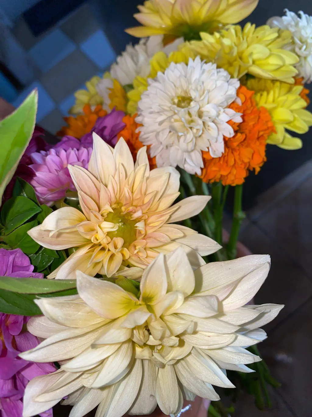 Cafe au Lait is the variety that launched today's dahlia mania. These big, romantic blooms are must-have for anyone who loves flowers. Cafe au Lait's blossoms are wonderfully variable in hue depending on weather conditions and time of year. You can expect flowers ranging from creamy yellow and bone through blush pink and rose. They are a fabulous cut flower, and like peonies, it takes just a few stems to make an impressive arrangement.