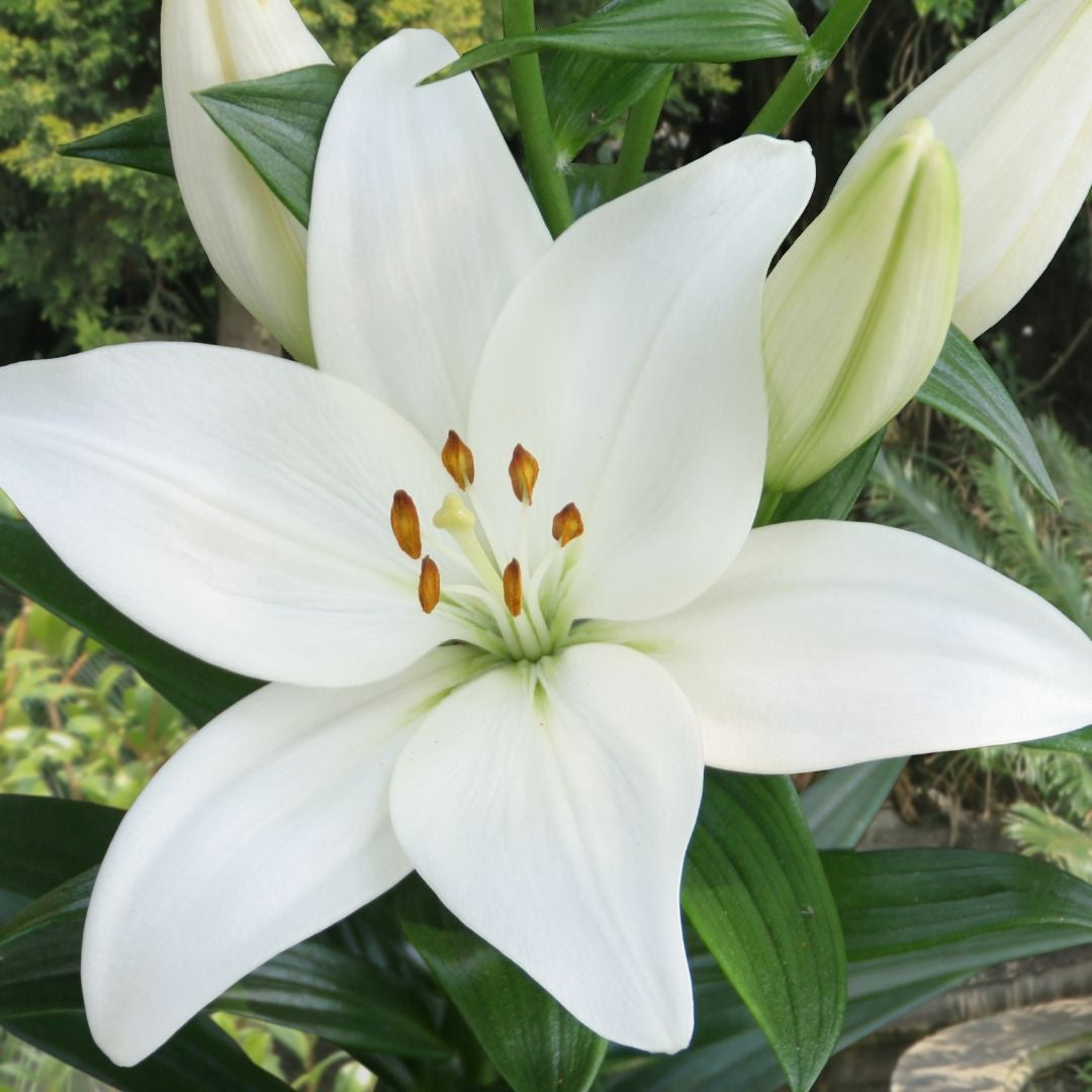 After many requests for a pure white Asiatic lily, we are pleased to introduce this outstanding new variety. The sturdy, 3' plants have large, upward-facing flowers with broad, snowy-white petals. These lilies are cool and elegant, and look especially lovely in partial shade. Plant them in perennial gardens, among shrubs or in containers.