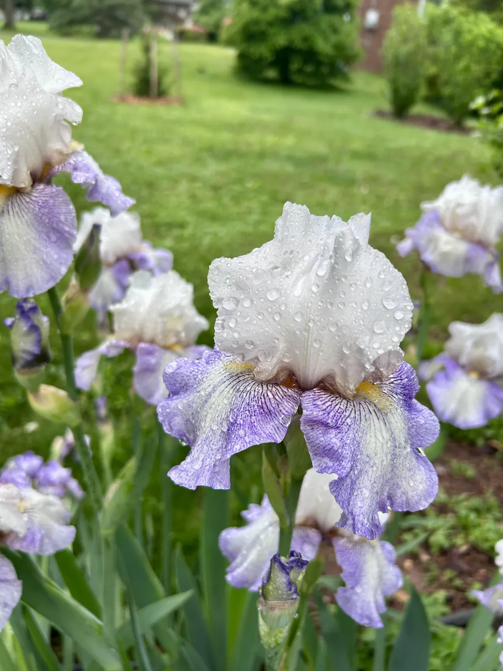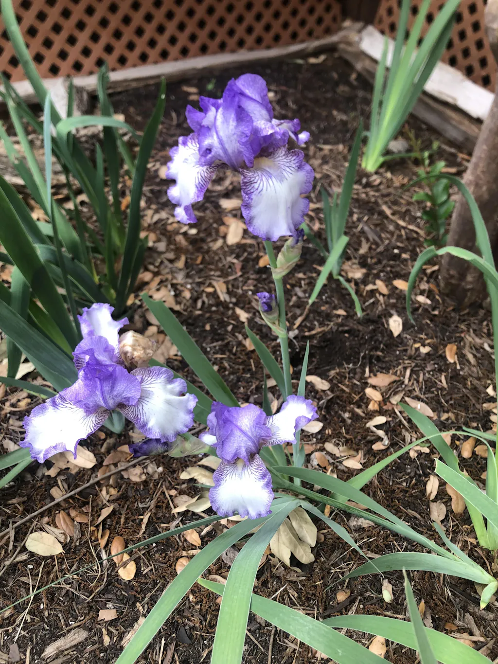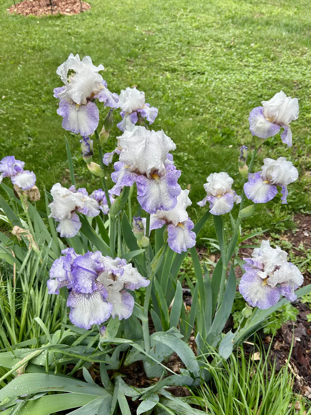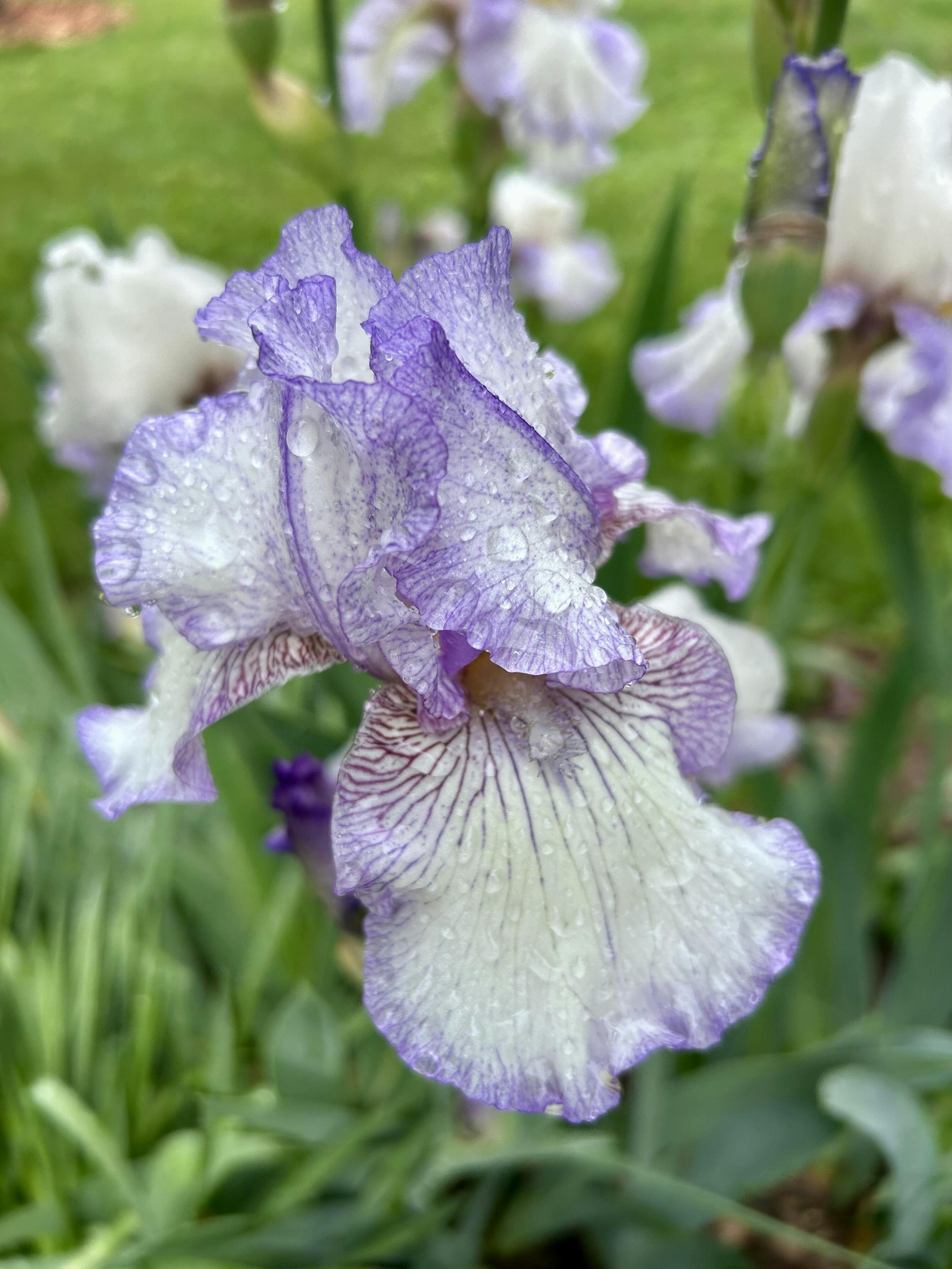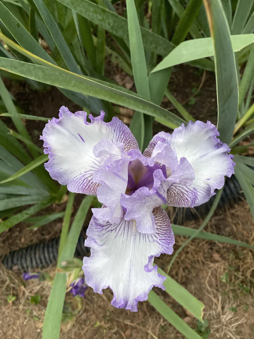 Earl of Essex is well known in the iris world for its classic plicata style. The shapely, pure white flowers feature soft ruffles and eggplant-colored veins and stippling. It blooms relatively early in iris season and reblooms in late summer or early fall.