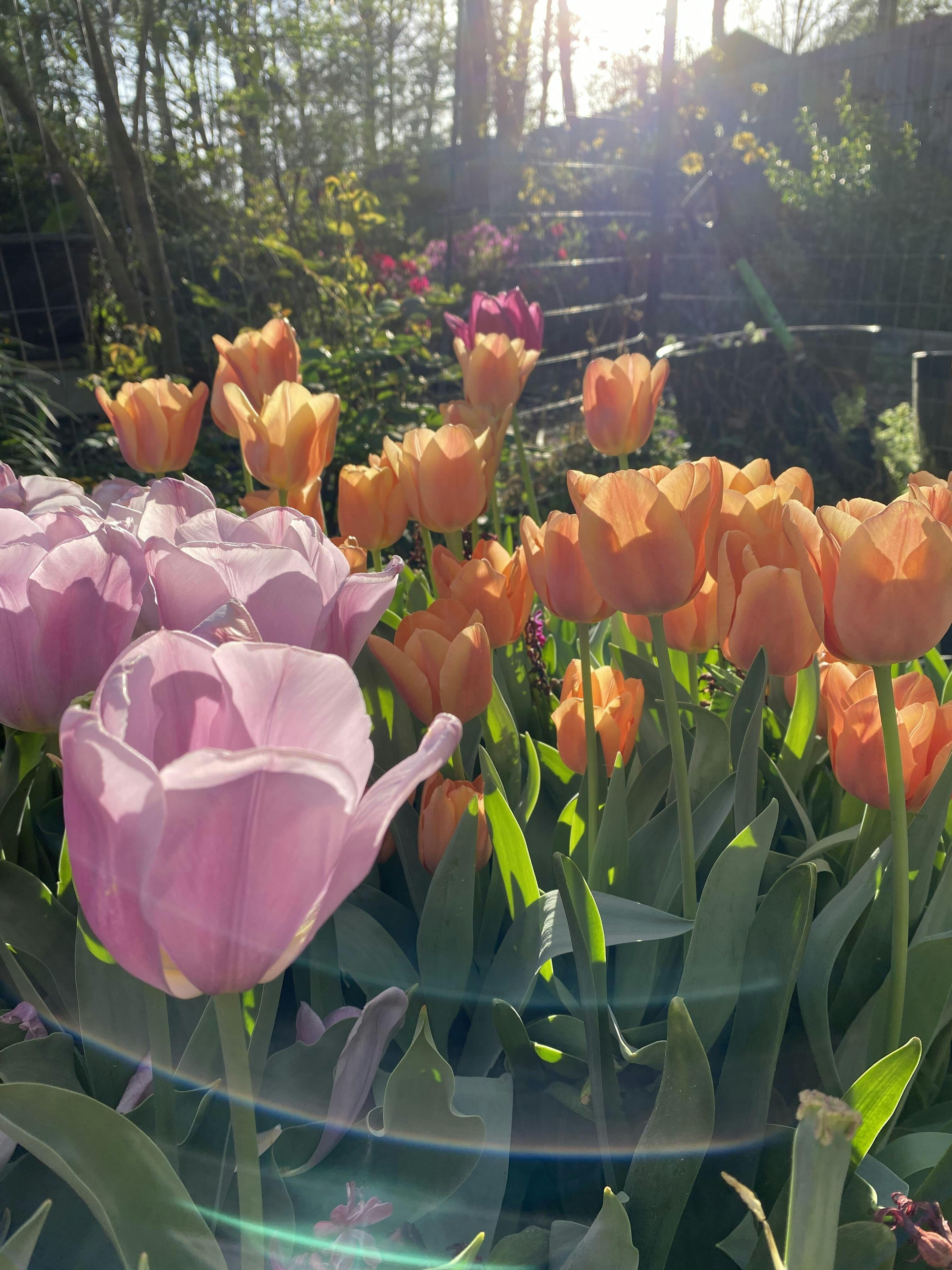Jimmy's big, mango-orange flowers are suffused with rose and tipped with gold. The colors change, depending on the light, which makes this tulip fun to watch. It's a good companion for almost any other color, from pink and yellow to purple and blue. Sturdy, long-lasting blooms. A proven performer, first introduced in 1966 by Jan and Adrian Van Hoorn