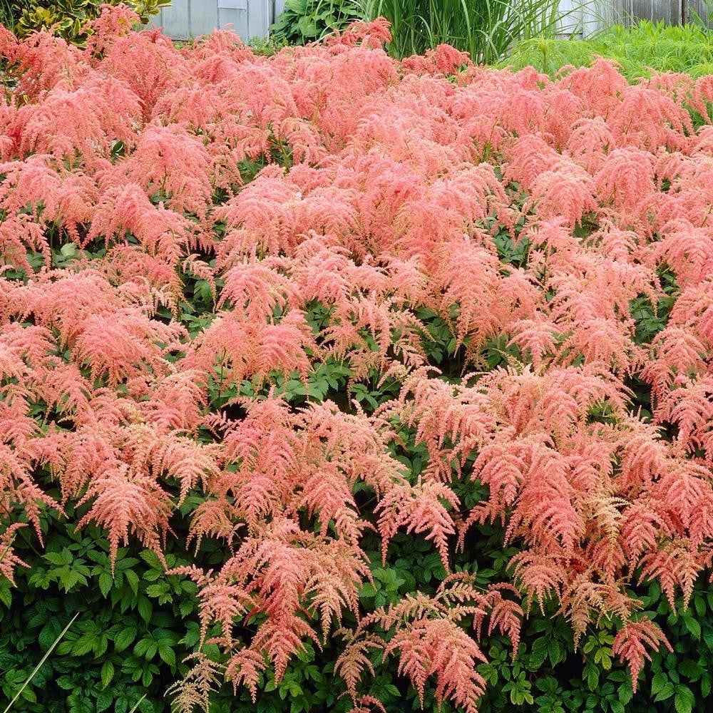 This popular variety's gently weeping flower panicles and flamingo pink color make it easy to recognize. Straussenfeder is a well-mannered plant that grows just 18" tall. Yet when in bloom, the flowers are double that height, rising to 3 feet tall. Bloom time is late spring to early summer.