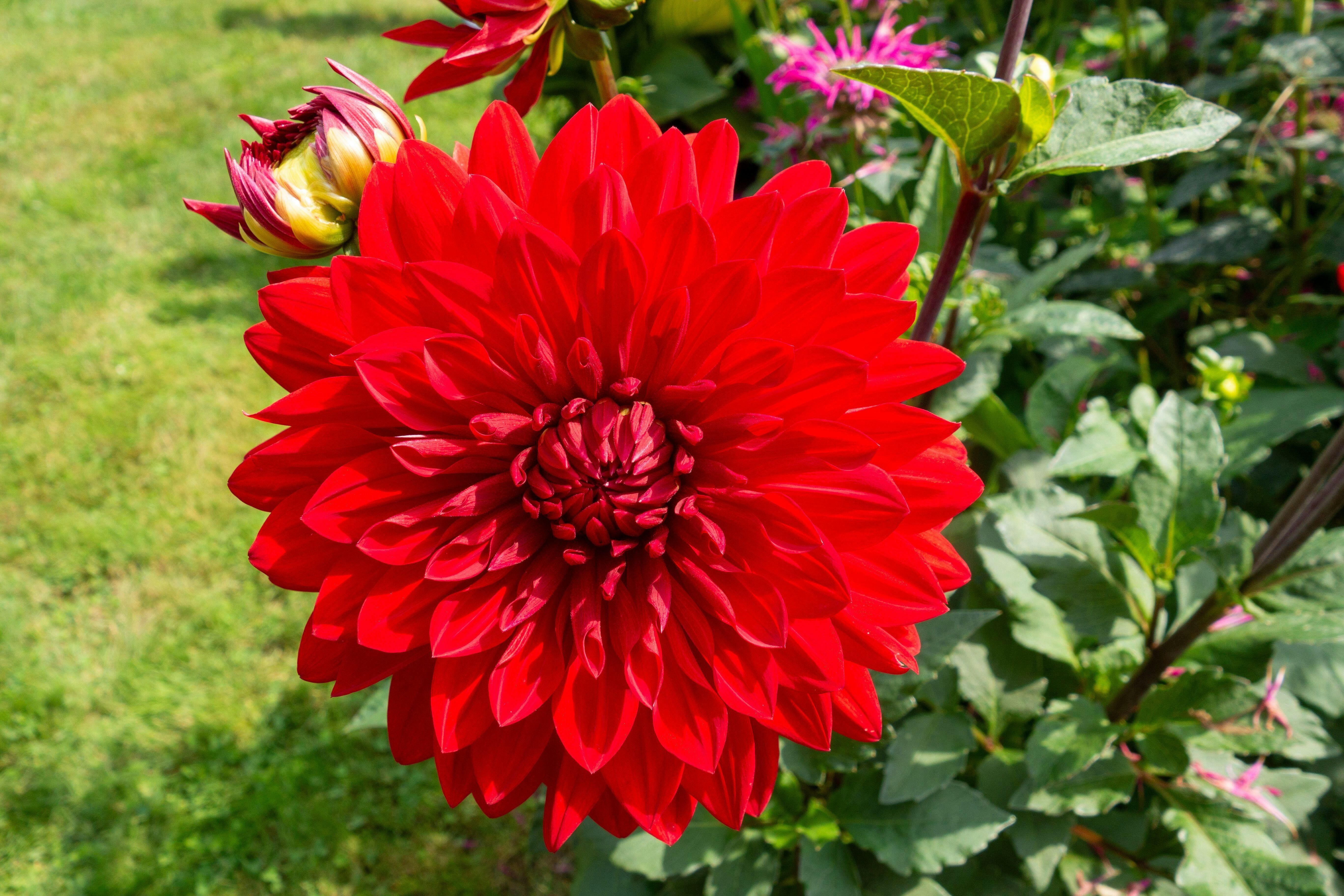 Among the best and the brightest of all red dahlias. Quilled petals give the flower depth and interest. Blossoms measure 6 to 8" across. A cutting garden classic.