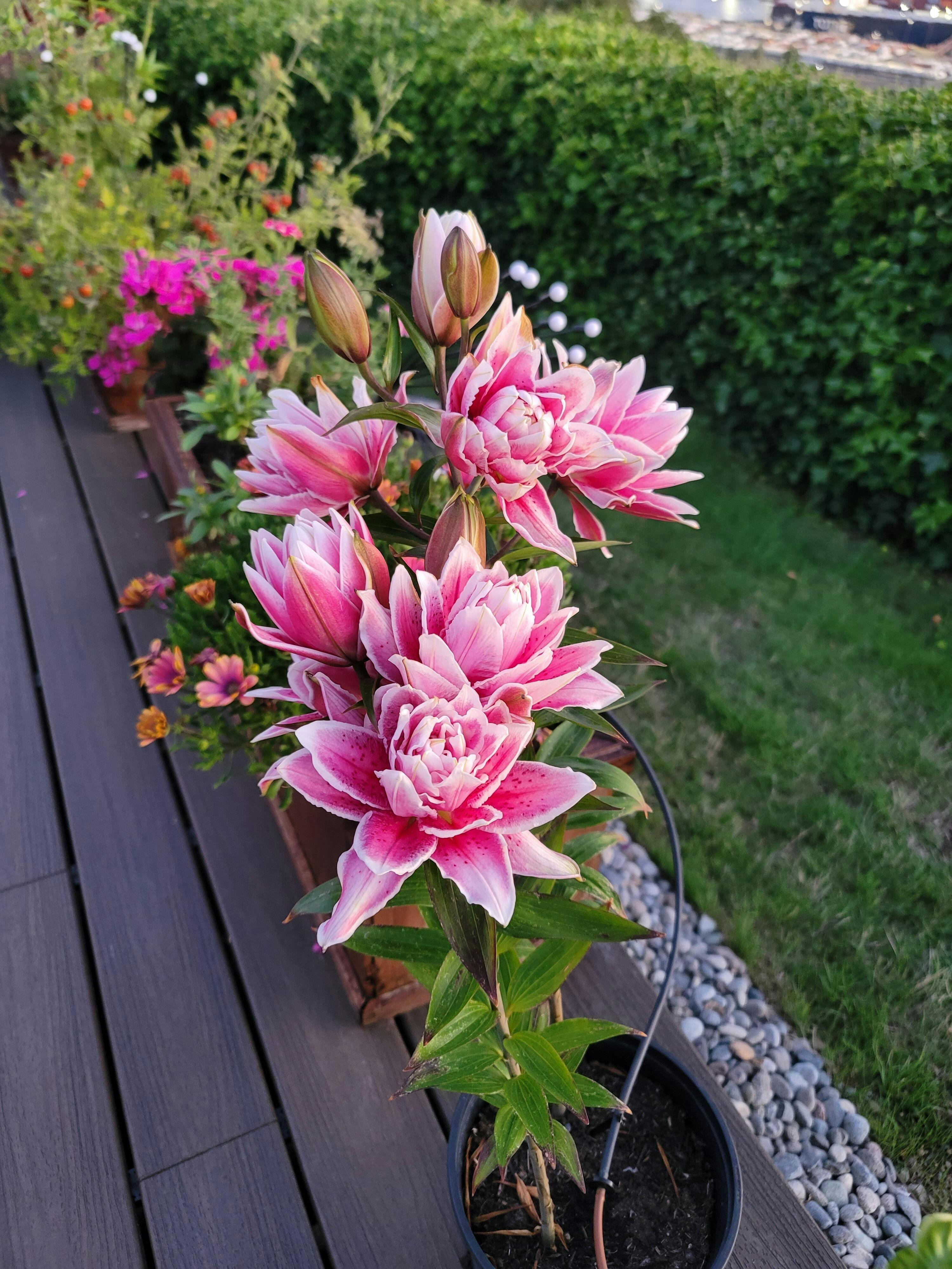 Be one of the first to grow this fabulous new Oriental lily. Roselily Samantha is a double version of the world-renowned Stargazer lily and features the same hot pink and white petals with red freckles. But rather than stamens, the blossom have 3 or 4 extra layers of petals. These vigorous, upright plants are ideal for perennial gardens and also grow well in containers.