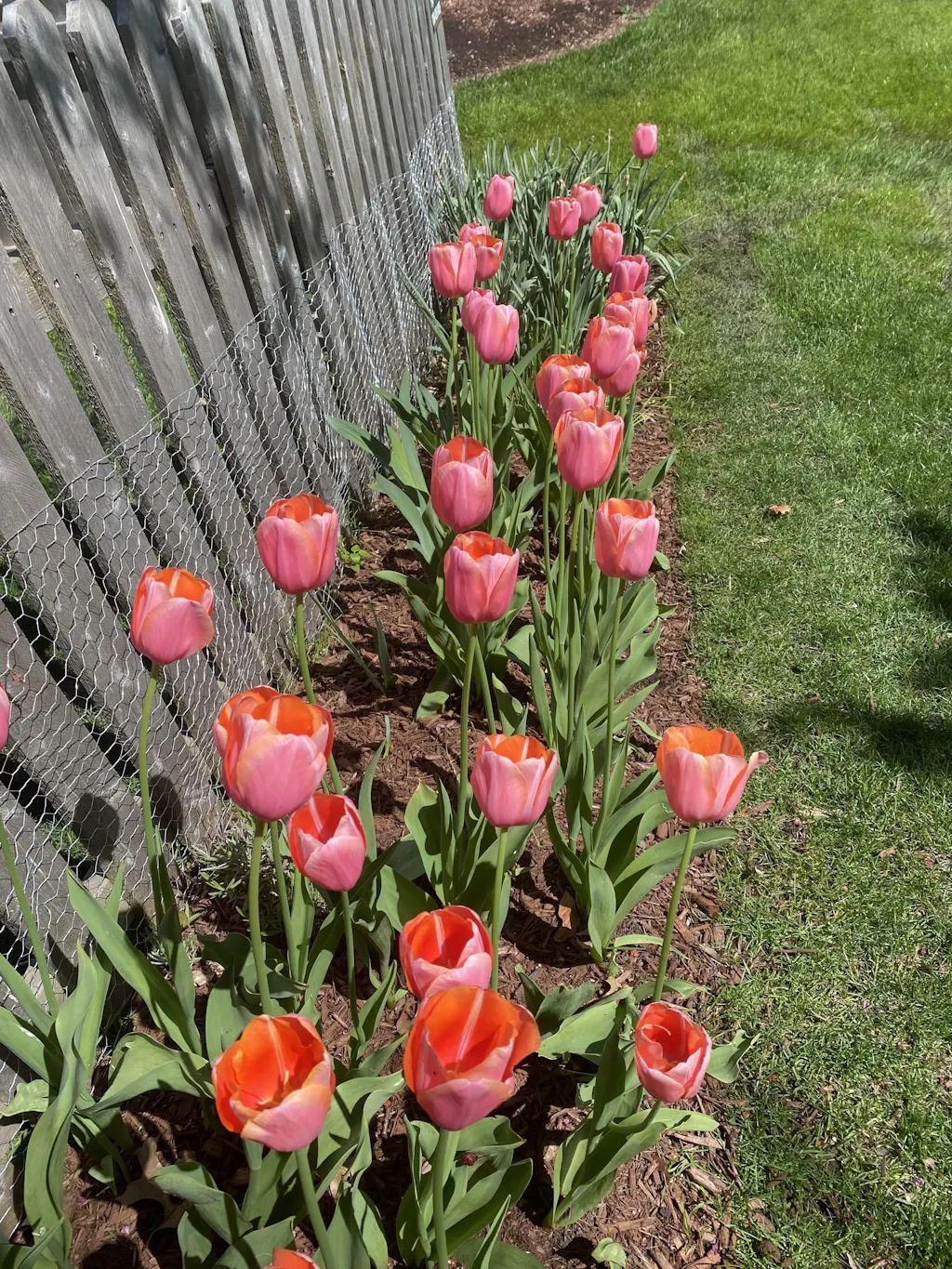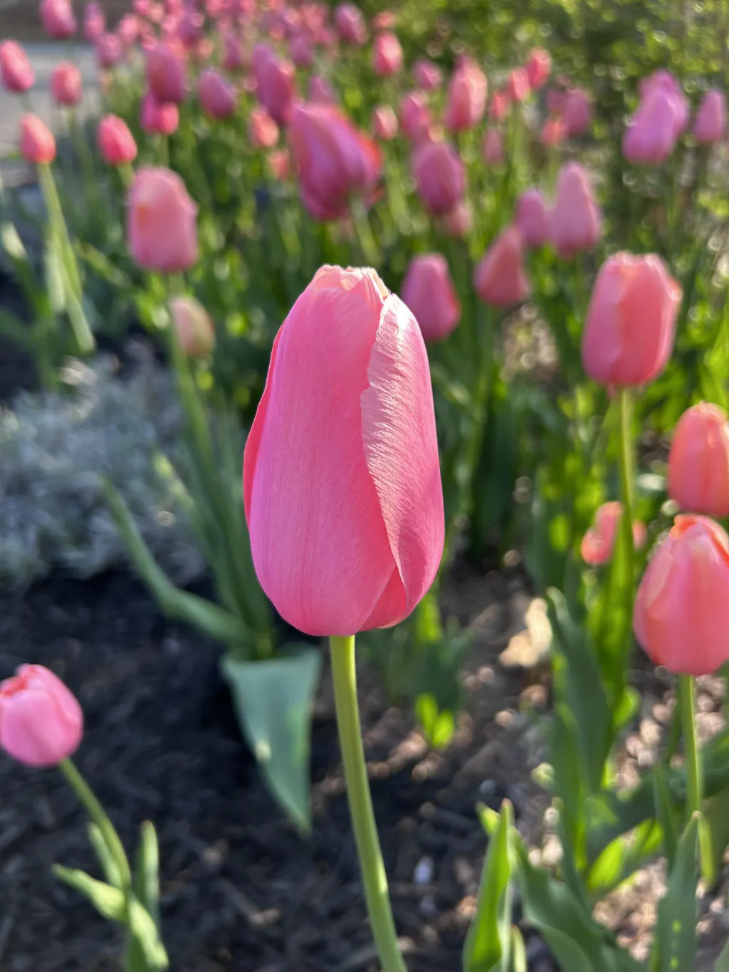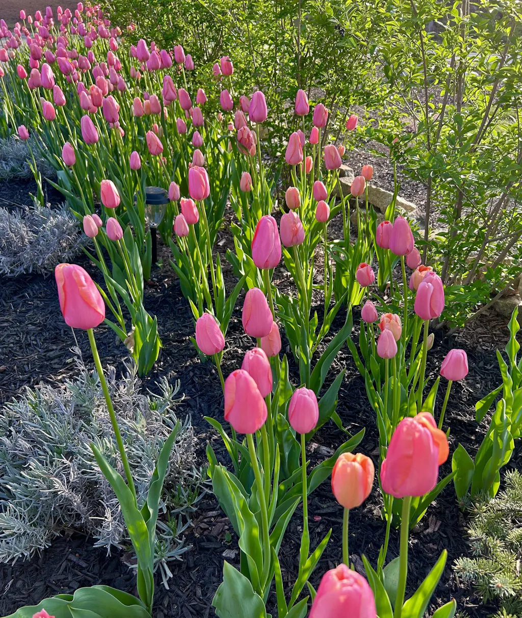 Menton was introduced in 1971 and it is still the most popular pink tulip for late spring. The jumbo flowers on tall, graceful stems display every variation of pink, from rose through fuschia and salmon. Always an outstanding performer.