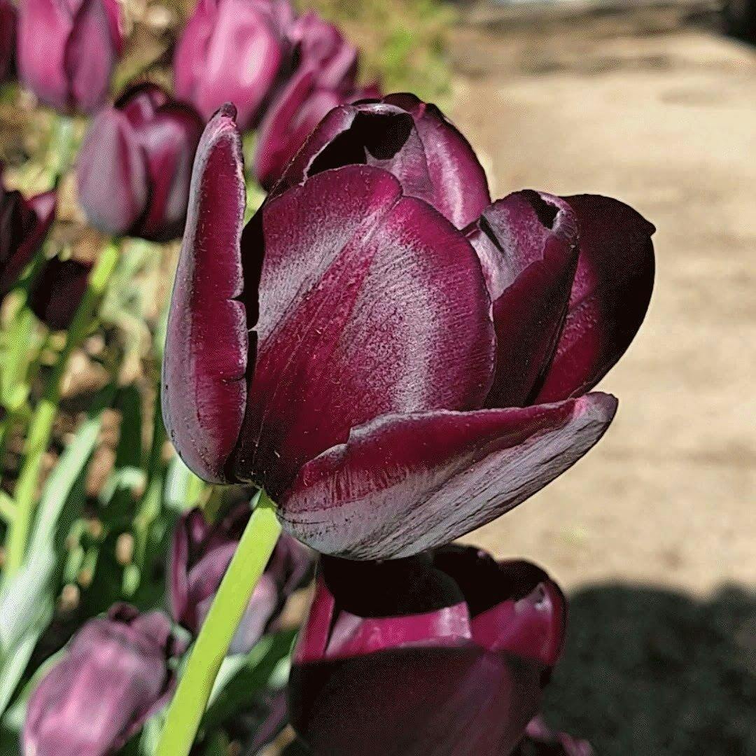 These dark, almost black tulips will add drama and sophistication to your spring garden. Queen of Night's petals are deep maroon with a dusky blue sheen. First introduced in the 1940s, it is consistently one of the world's most popular tulips. We are offering these bulbs in bulk so you can have fun creating your own unique combinations.