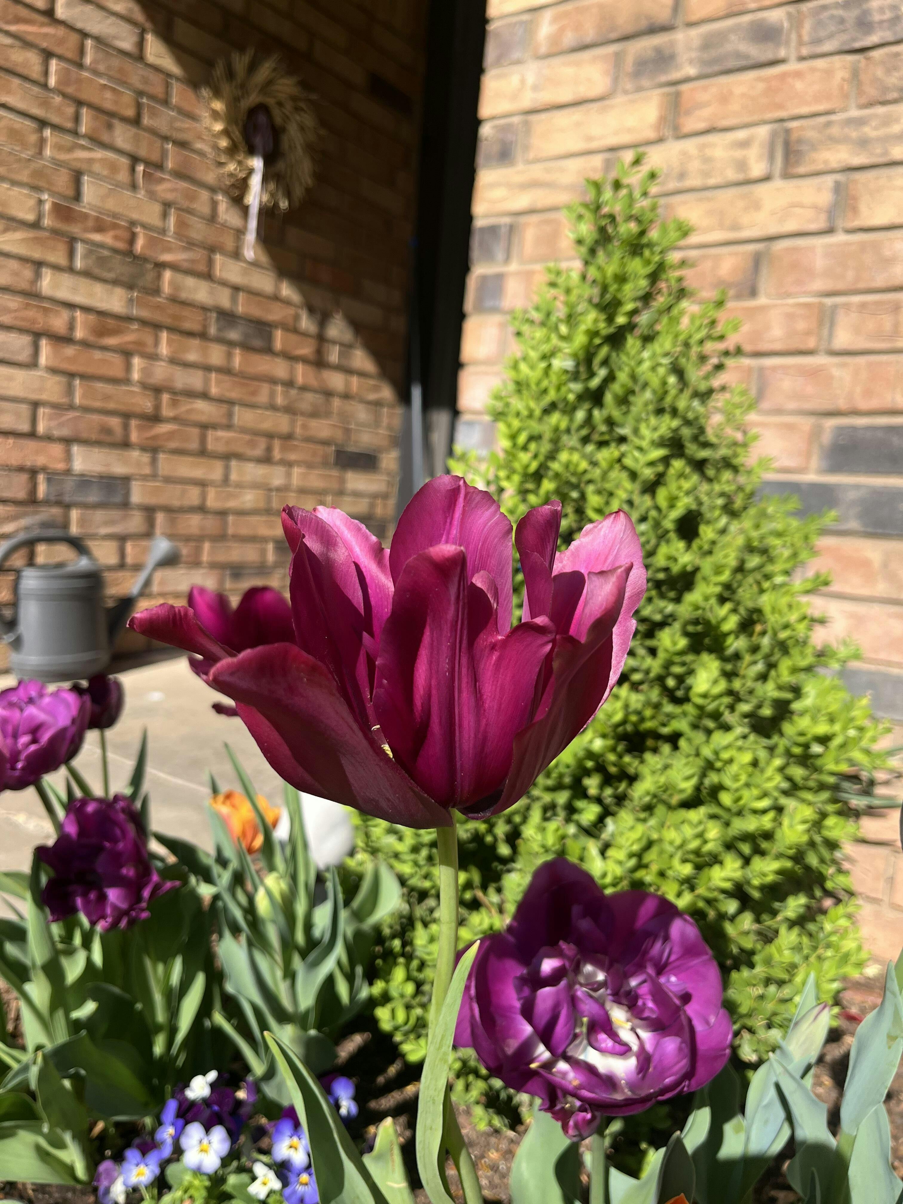 When the sun strikes this tulip, it sparkles like sunlight through a glass of red wine. Pair Merlot with white for a crisp, formal look, or with orange for a look that's bold and modern. Blooms in late spring on tall, graceful stems.