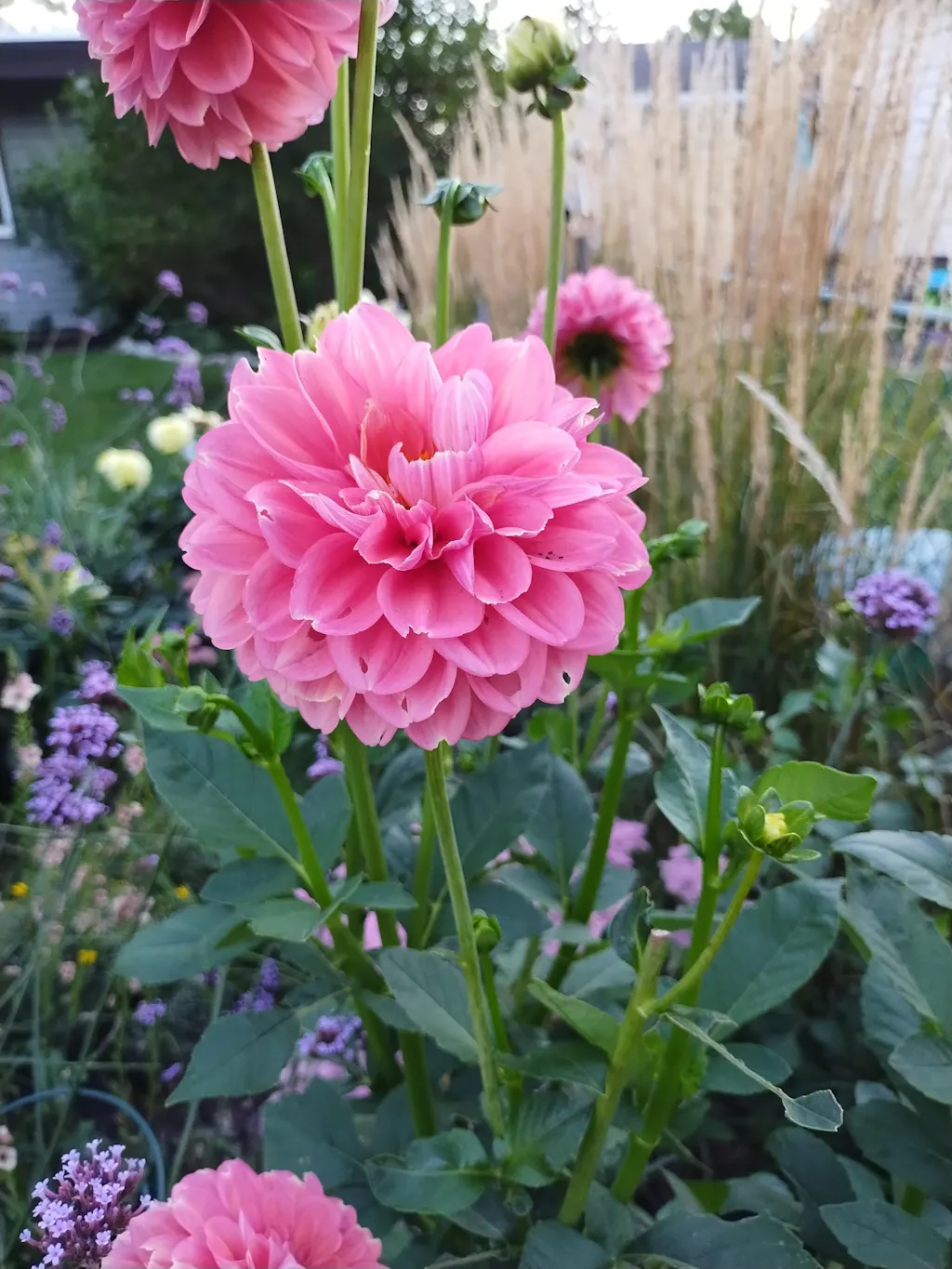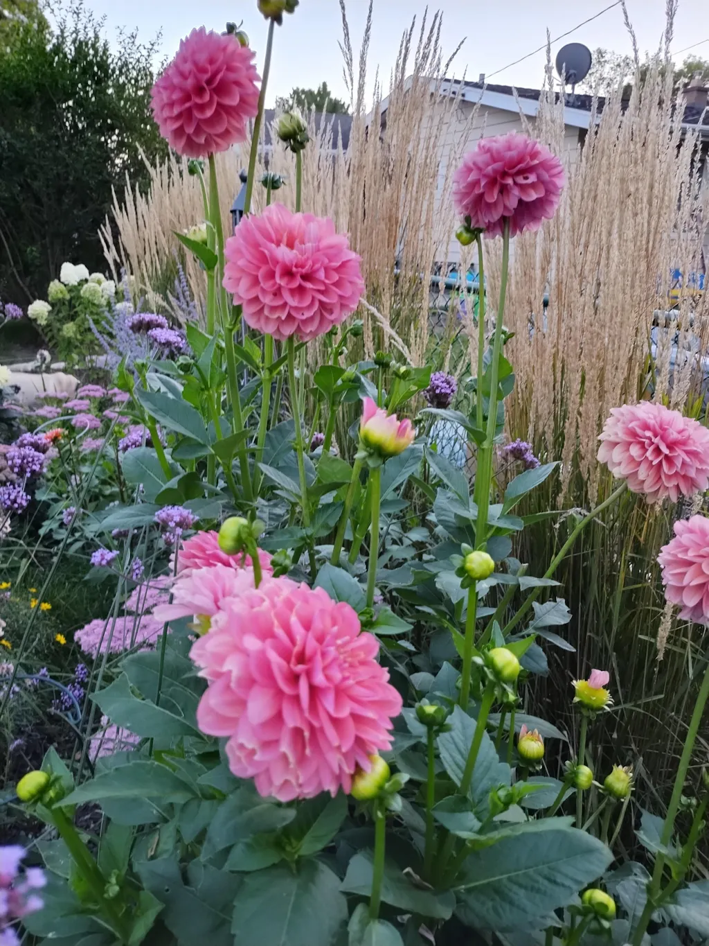 Decorate your yard, garden and patio with these pretty pink dahlias. The blossoms display a full range of hues from baby pink to brilliant fuchsia. The compact (24") plants are covered with big, 4" flowers all summer long. Perfect for edging a walkway or flower bed, they also grow well in containers.