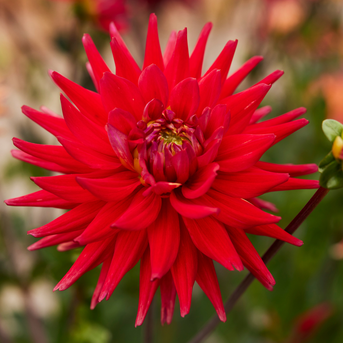 This cactus dahlia will stop you in your tracks with its brilliant, scarlet red flowers. Red Corona was bred as a cut flower, and like other Karma dahlias, the plants are compact with dark green foliage, long stems and a high bud count. The quilled petals add extra texture and volume.