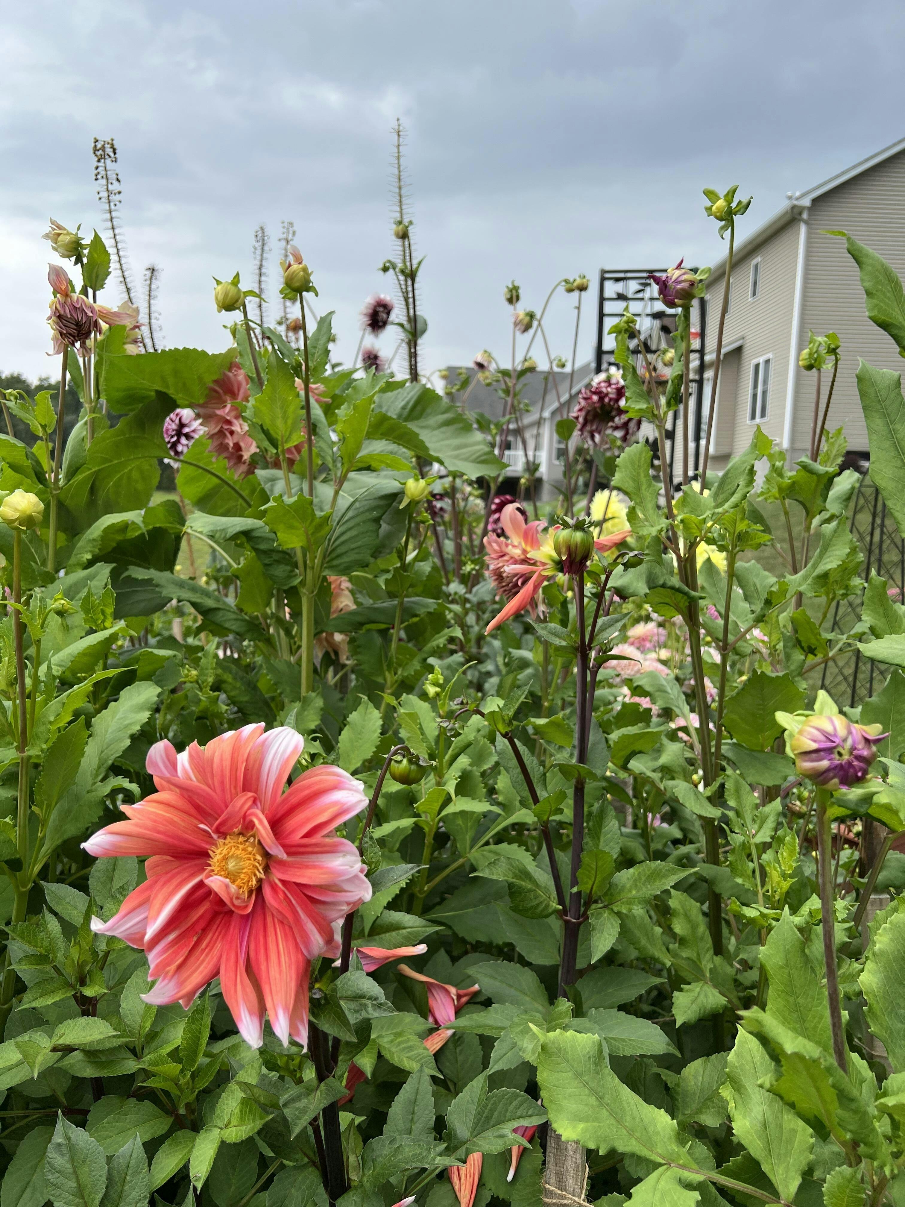 Another outstanding member of the Penhill family of dahlias, which are known for their impressive size, twisted petals and marled colors. Dark Monarch's flowers are a fabulous blend of dusky rose, raspberry and peach with flashes of violet. You'll find they mix beautifully with every other color in your garden.