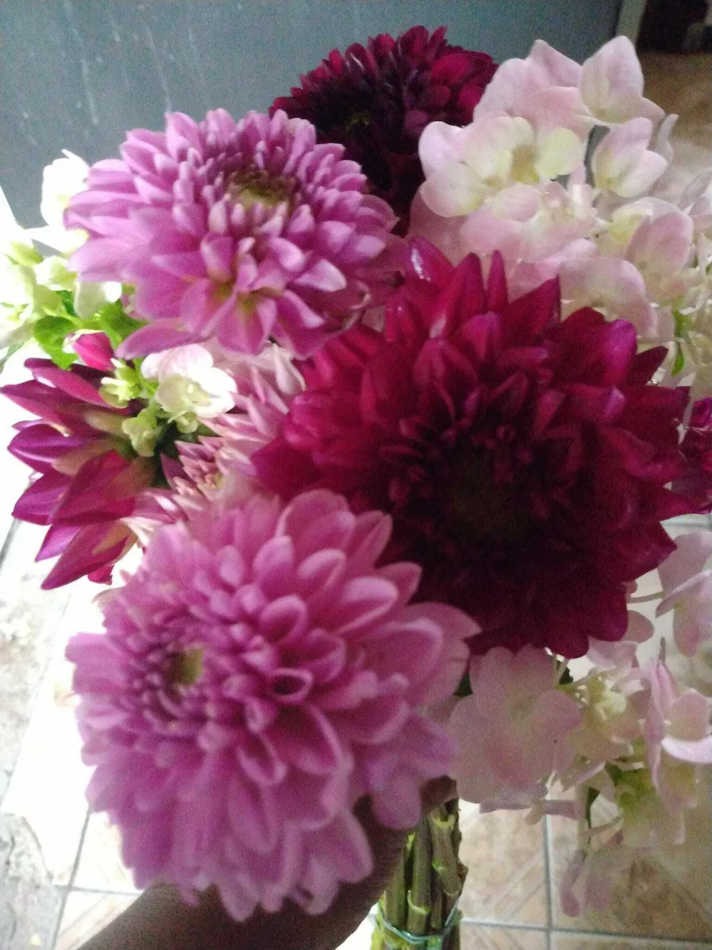 Ball dahlias feature a honeycomb of tightly curled and densely-packed petals. They are sturdy, long-lasting cut flowers. Varieties with smaller blossoms, like this one and its cousin Maarn, (both just 2-3" across), mix easily with other summer blooms. Sandra's rose-pink flowers have lighter pink tips that give them a frosted look.