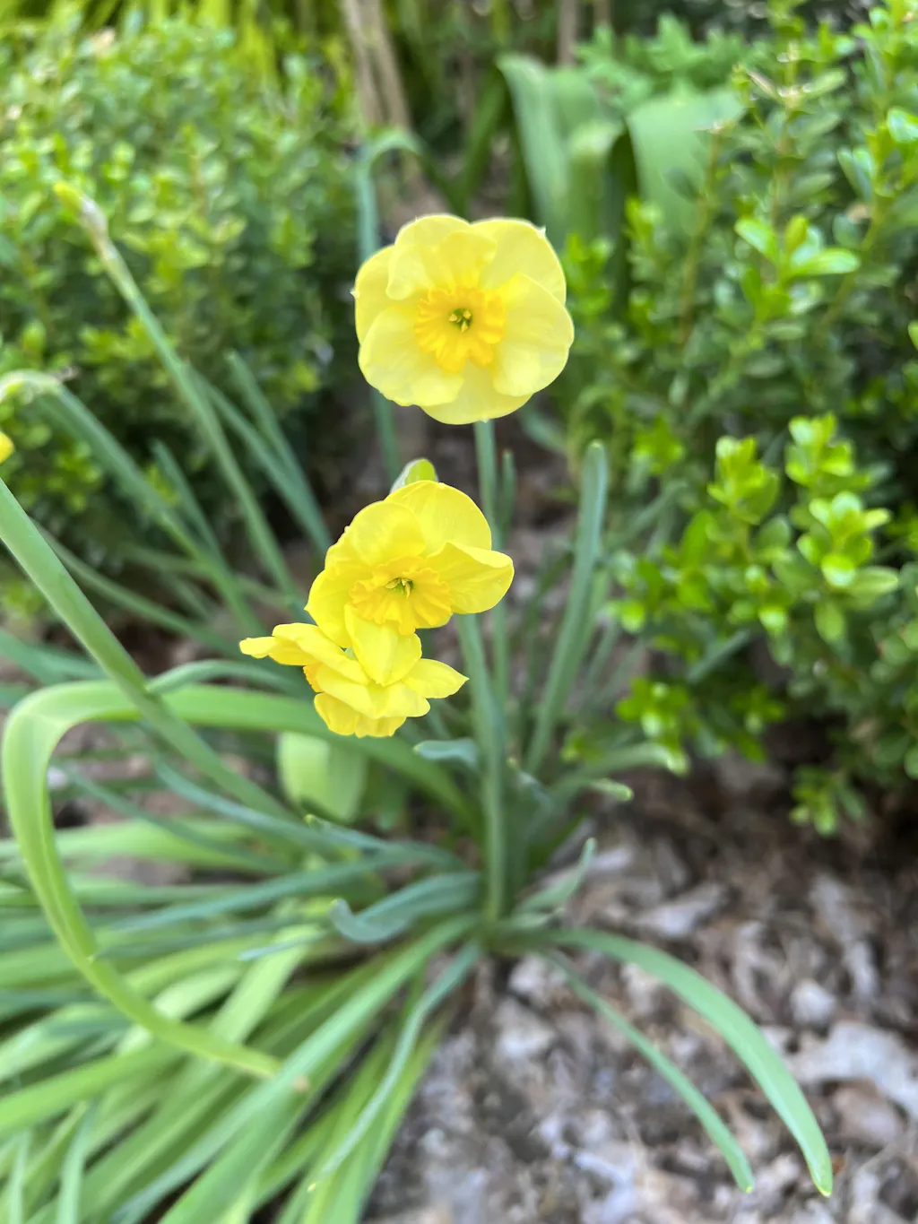 These perky, 1" diameter flowers have rounded, pale yellow petals and almost flat, deep yellow cups. The blossoms are displayed on slender, 12" stems and the narrow, grassy foliage fades away quickly after flowering. A good performer in both cold and warm climates. Great choice for perennial gardens.