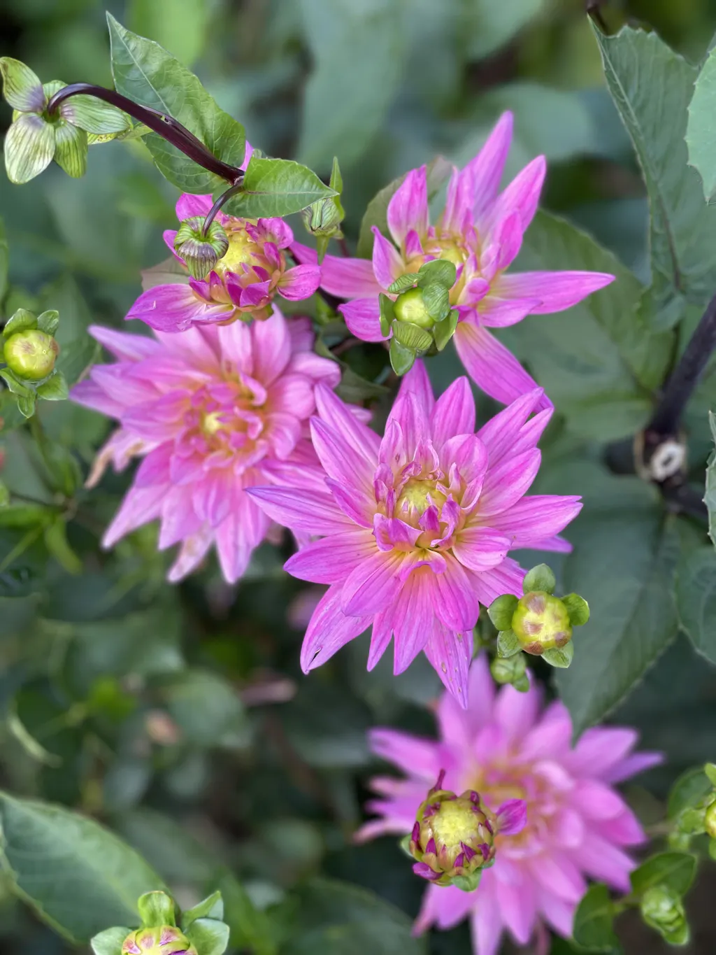 This spiky cactus-style dahlia has pretty rose pink flowers with a glowing yellow center. Karma Pink Corona was bred for the cut flower trade, so you can expect to pick loads of big, 5" blooms on long stems. The compact plants keep gardens colorful long after other perennials have faded.