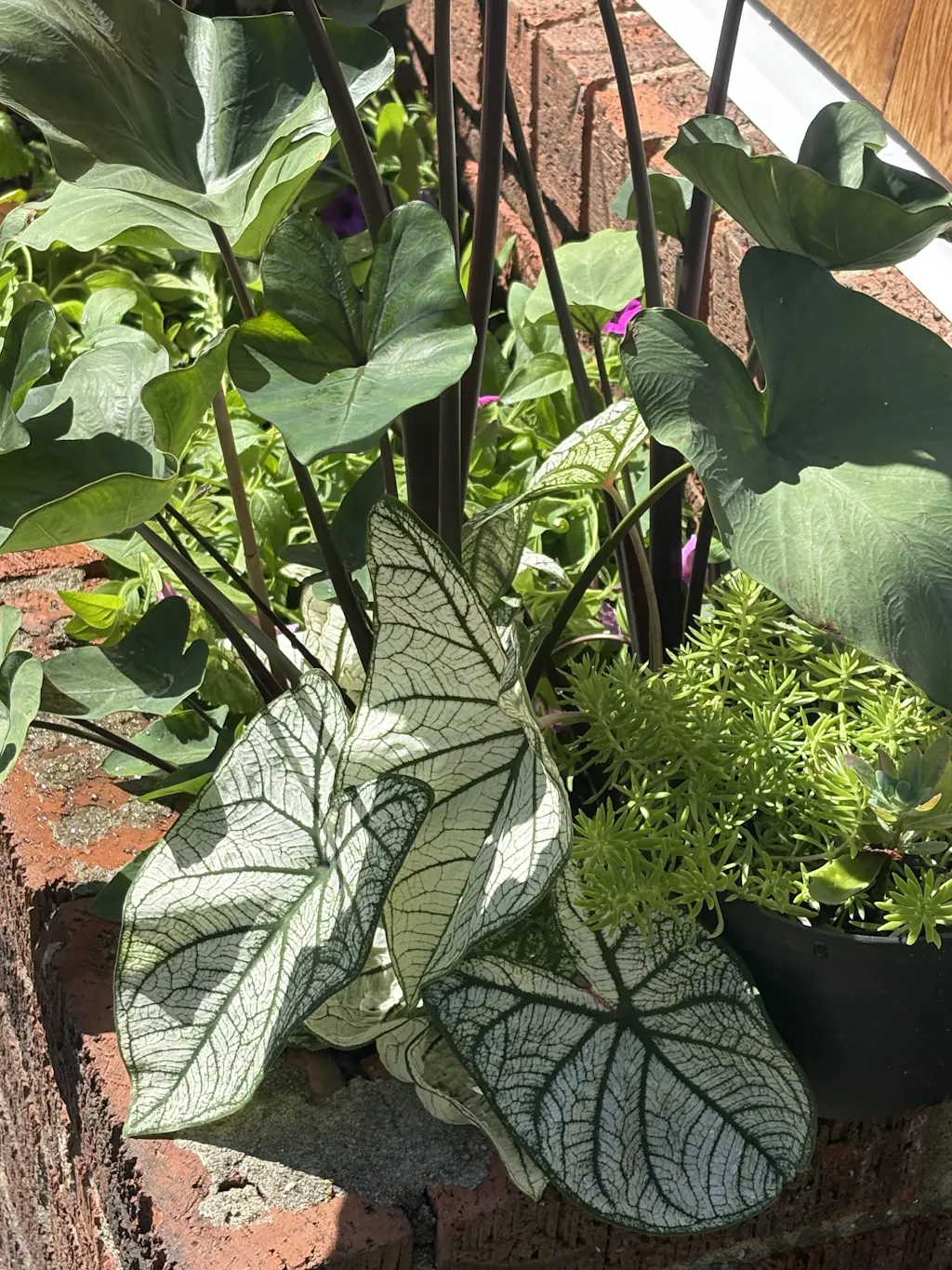 A classic caladium with snow-white, heart-shaped leaves and dark green veins. Candidum is especially dazzling in deep shade and by moonlight, when the leaves are almost luminous. For best results, grow this variety in full to partial shade.