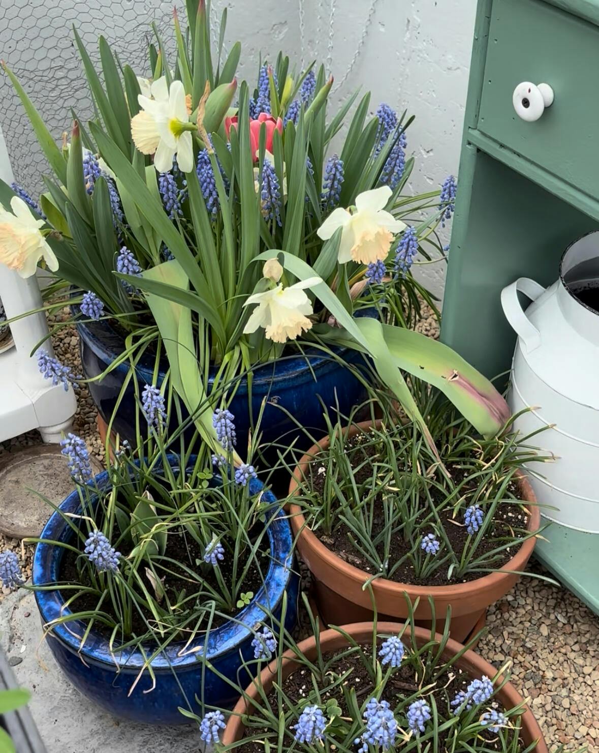 Grape hyacinths are easy to grow and their flowers complement every other plant in your spring garden. The cobalt blue bells open slowly from the bottom up so the flowers last for weeks. Muscari look great wherever they're planted -- among tulips and daffodils, beneath trees and shrubs, in flower beds or in containers. They're also good naturalizers. Buy in bulk and plant generously!