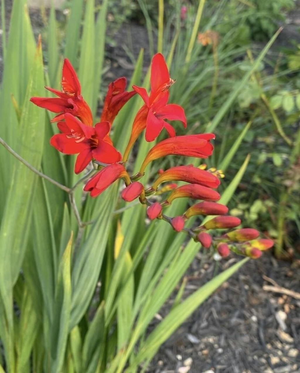 Crocosmia are native to southern Africa, yet this variety grows well almost everywhere in the US and can survive zone 4 winters. Lucifer's scarlet red flowers are displayed on graceful, arching stems. The blossoms open one by one from the bottom up, providing weeks of brilliant color. The plant's lush, swordlike foliage is an attractive feature all season long. A riveting late summer attraction.