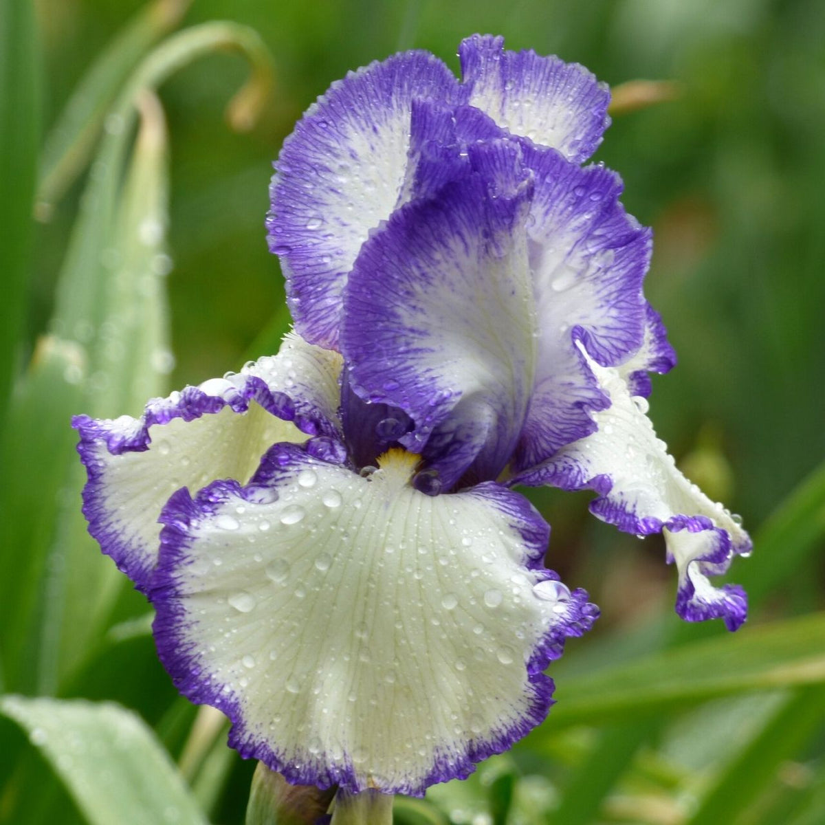 This award-winning iris will make a striking addition to your flower garden. The blossoms feature ruffled, pure white standards and falls, both outlined in deep, cobalt blue. Beards are silver and gold. Bloom time is early midseason with another round of flowers in late summer. Named to commemorate the Presby Memorial Iris Gardens in NJ.