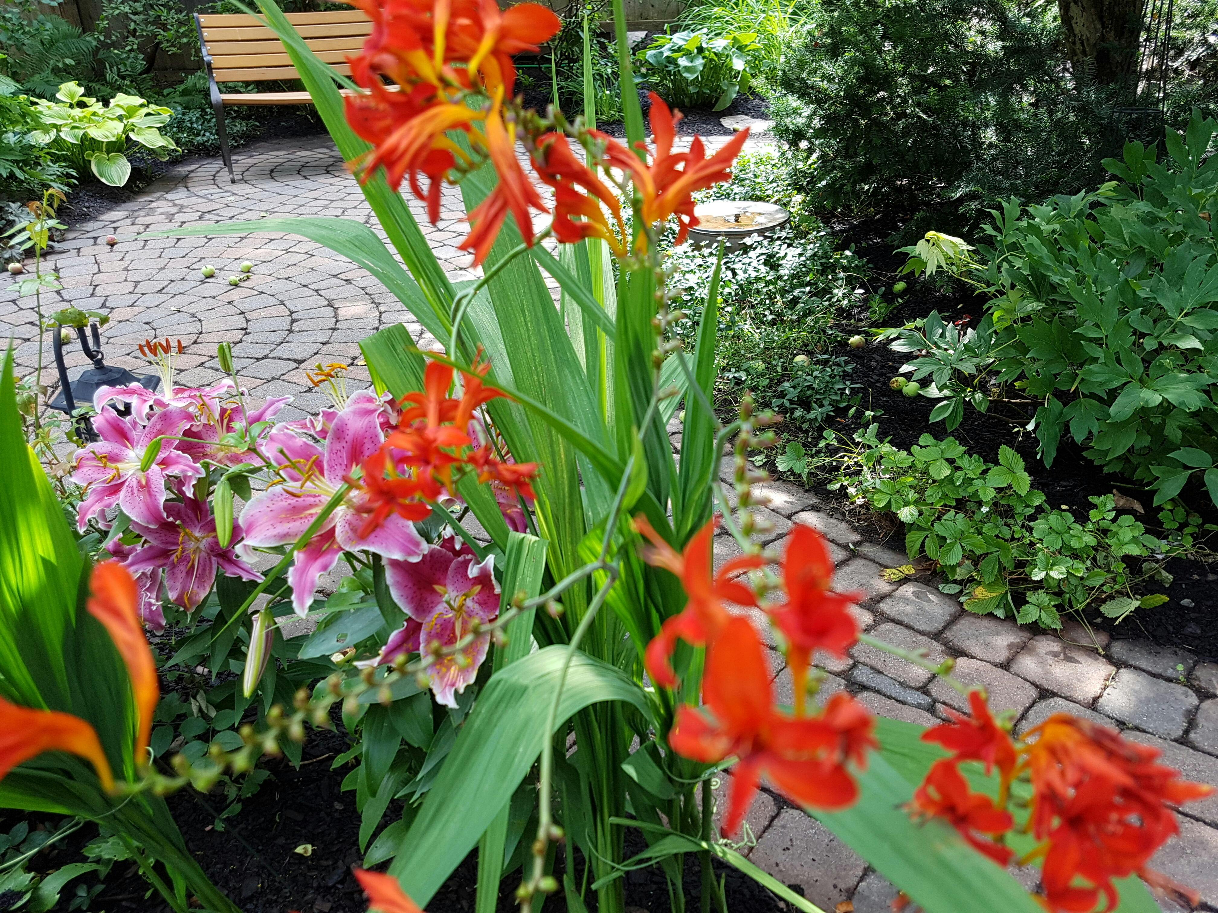 Crocosmia are native to southern Africa, yet this variety grows well almost everywhere in the US and can survive zone 4 winters. Lucifer's scarlet red flowers are displayed on graceful, arching stems. The blossoms open one by one from the bottom up, providing weeks of brilliant color. The plant's lush, swordlike foliage is an attractive feature all season long. A riveting late summer attraction.