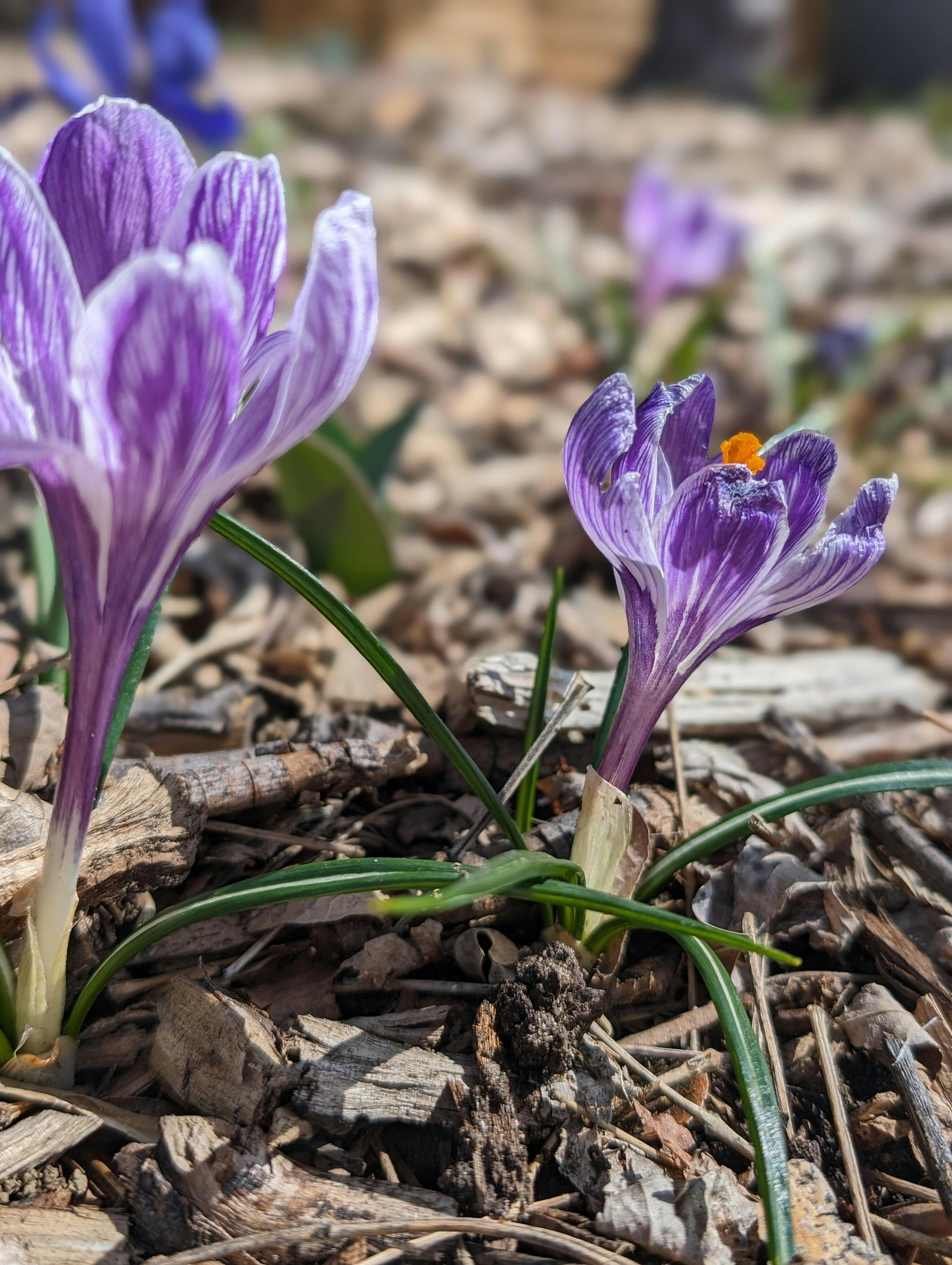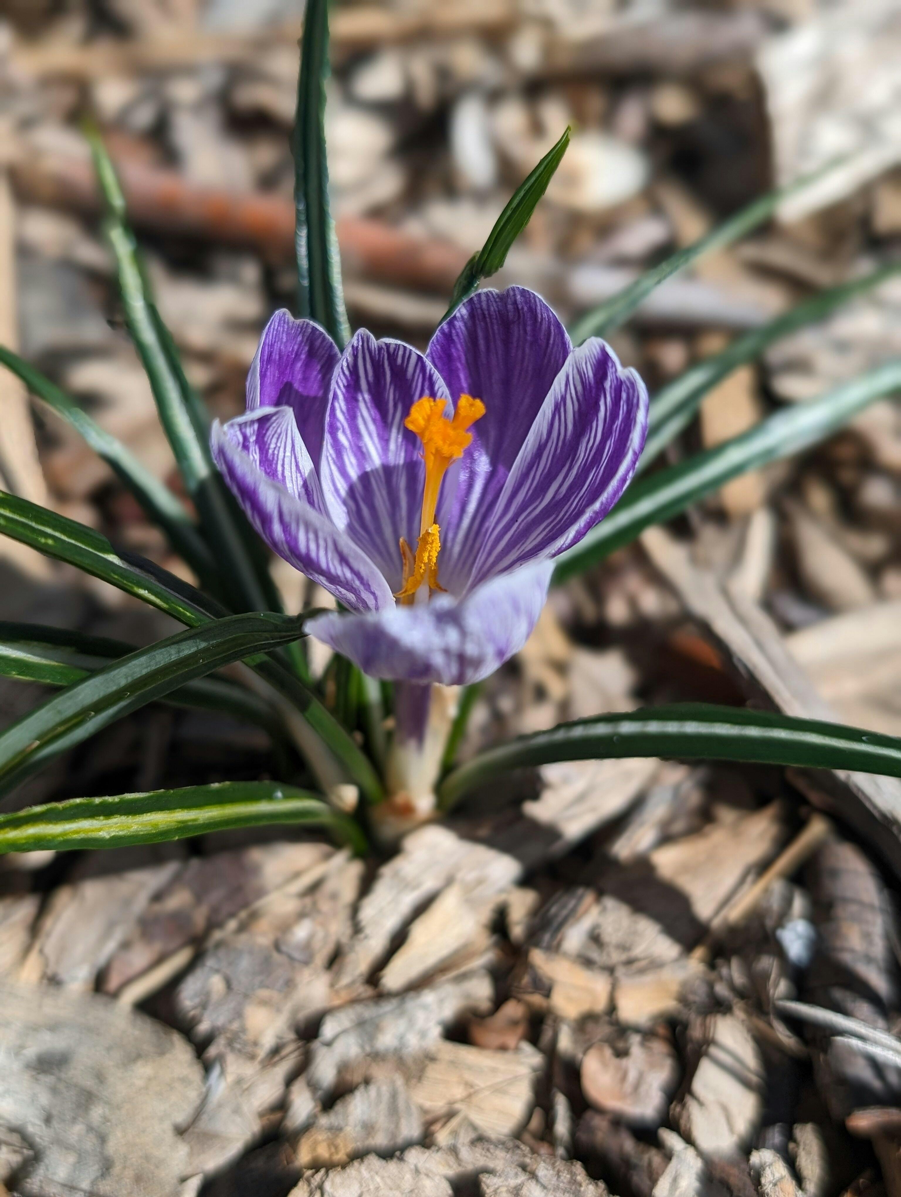 This happy little crocus has lots of personality and a unique look that will win your heart. Pickwick's petals are festooned with fancy purple pinstripes. They surround brilliant red-orange stamens that attract bees like a magnet.