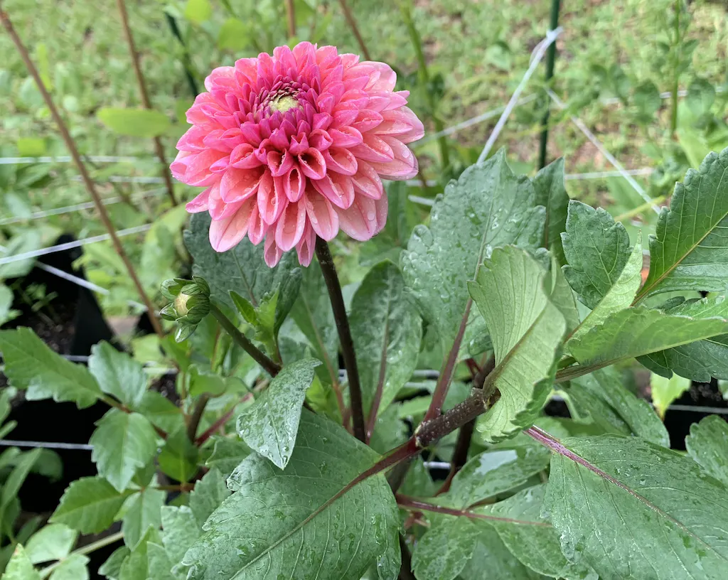 We are excited to be offering this beautiful and incredibly versatile dahlia. Daisy Duke's coloring is similar to American Dawn but more pink than coral. The peach-pink petals are set off by a cool, raspberry-violet center. The flowers have the substance of a ball dahlia, but are looser, with longer petals. The size is half way between American Dawn and Burlesca, which are fabulous companions. Overall, this is an outstanding dahlia that deserves a place in your garden.