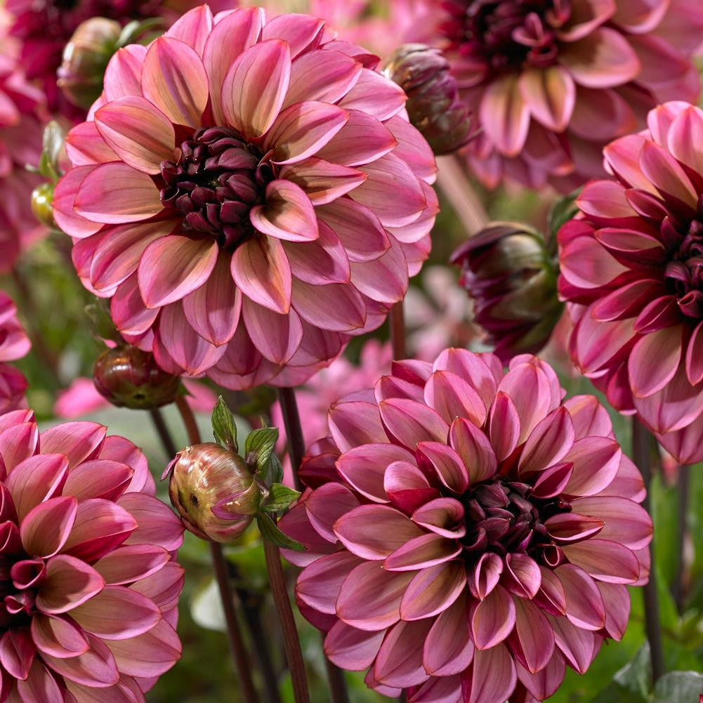 We first saw this variety last summer at the Seattle Wholesale Growers Market and instantly fell in love. The petals of Senior's Hope are dusky rose with a raspberry-wine reverse. A burgundy center adds contrast and drama. This dahlia's moody color and unusual form will be a lovely addition to your summer arrangements.