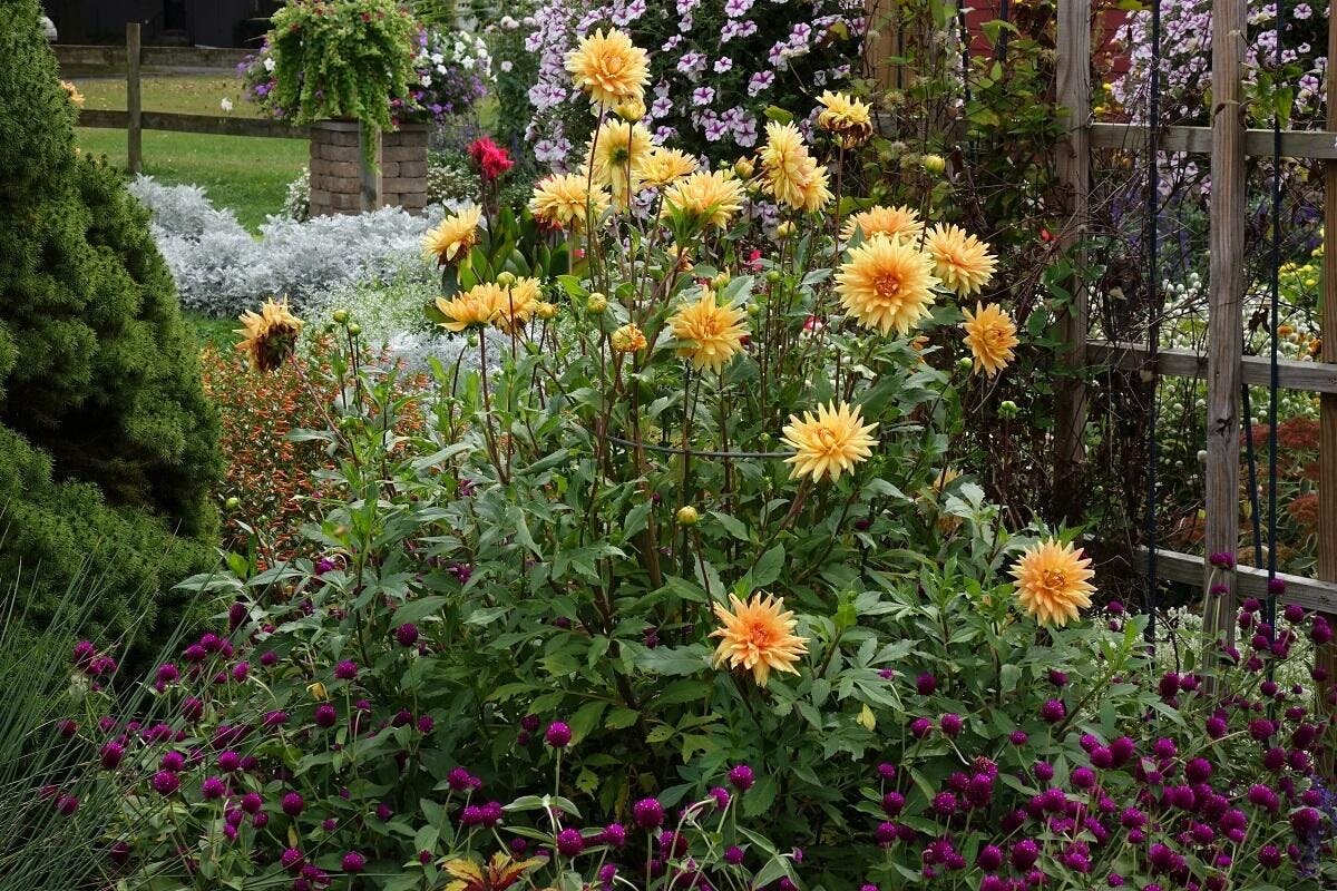 This gorgeous, butterscotch-colored dahlia is named for a town in one of Holland's oldest bulb growing regions. The flowers of Noordwijks Glorie are 6 to 8" across, with long, dark, wiry stems that are excellent for cutting. Introduced in 1969, this dahlia is a strong grower and produces tons of flowers.