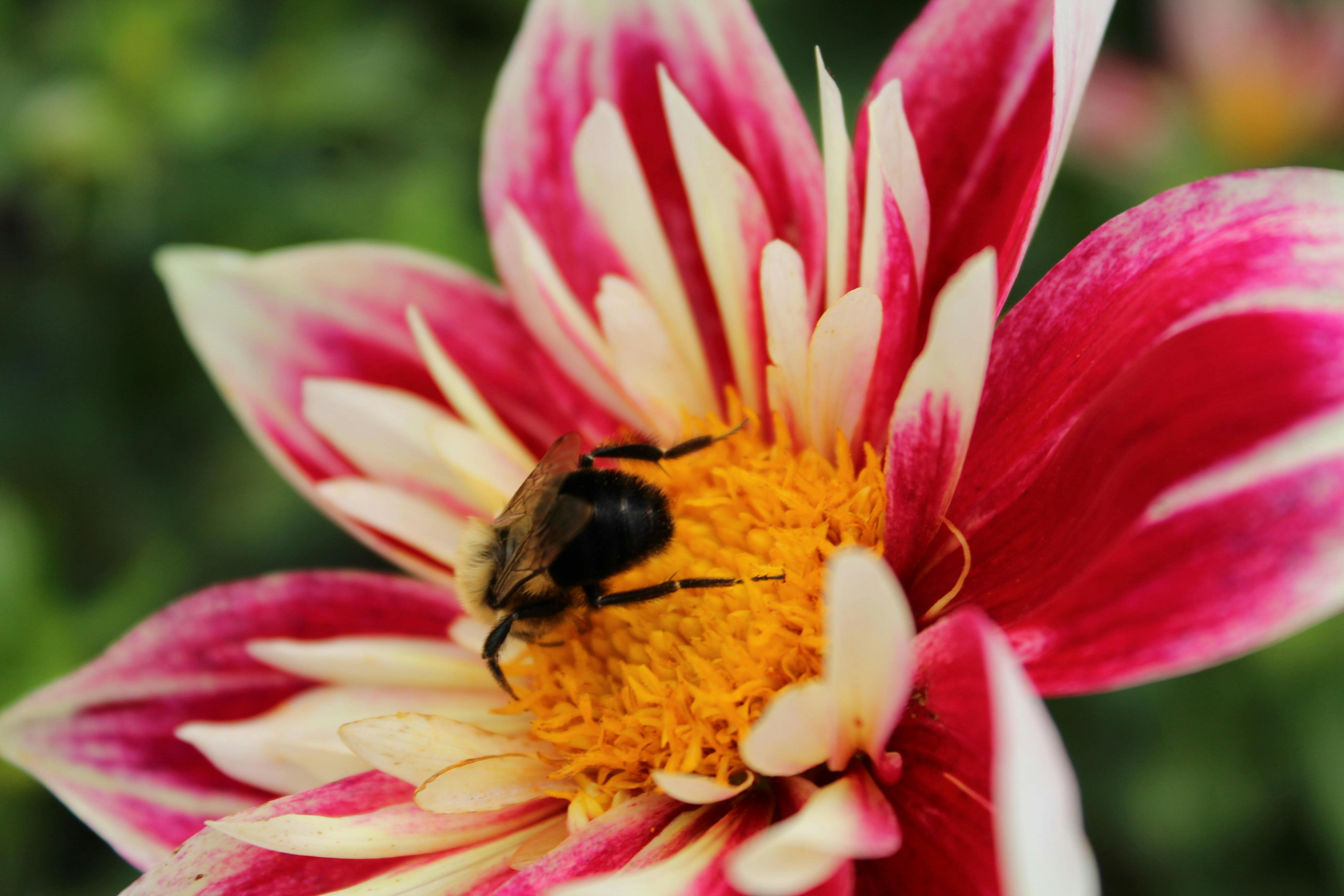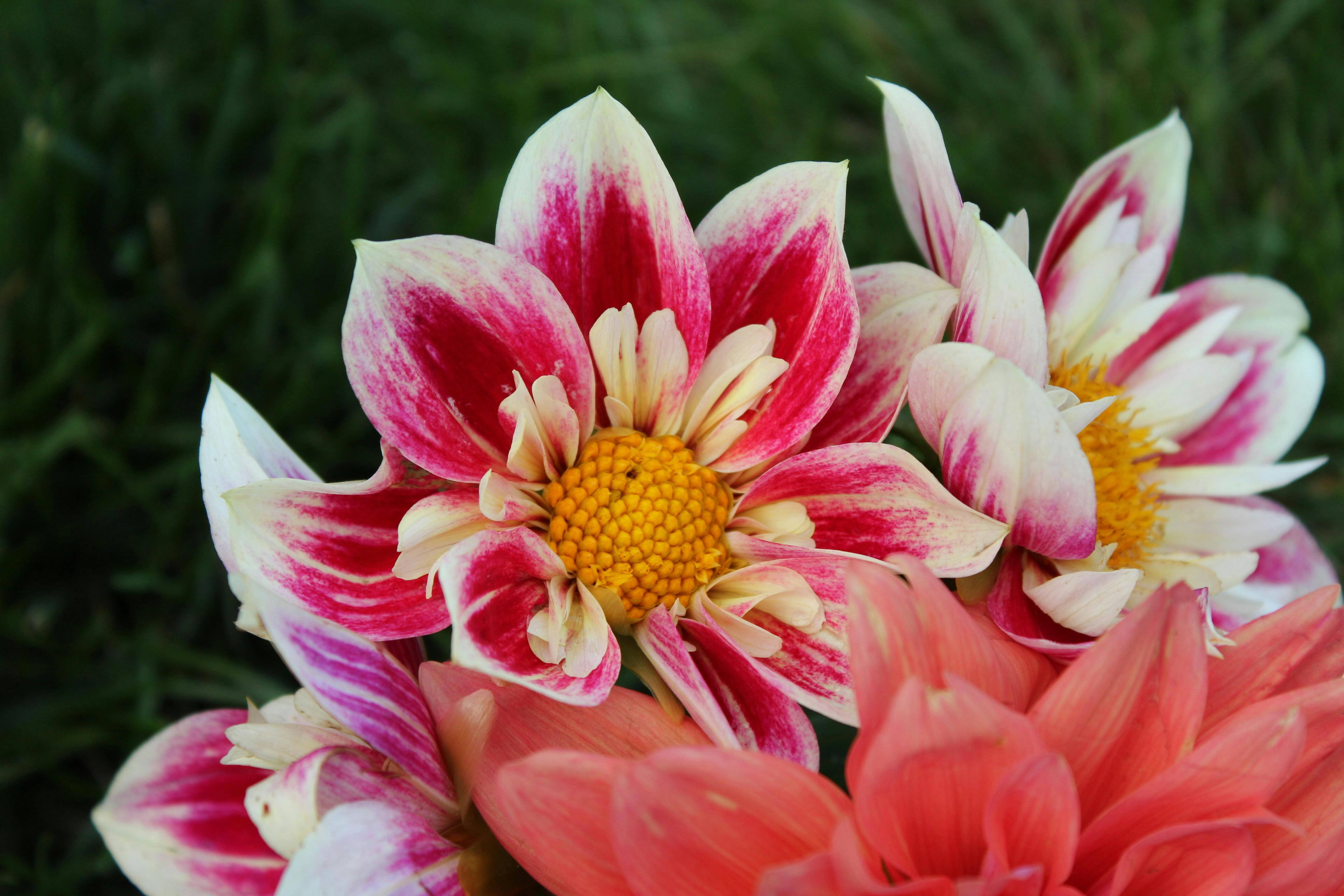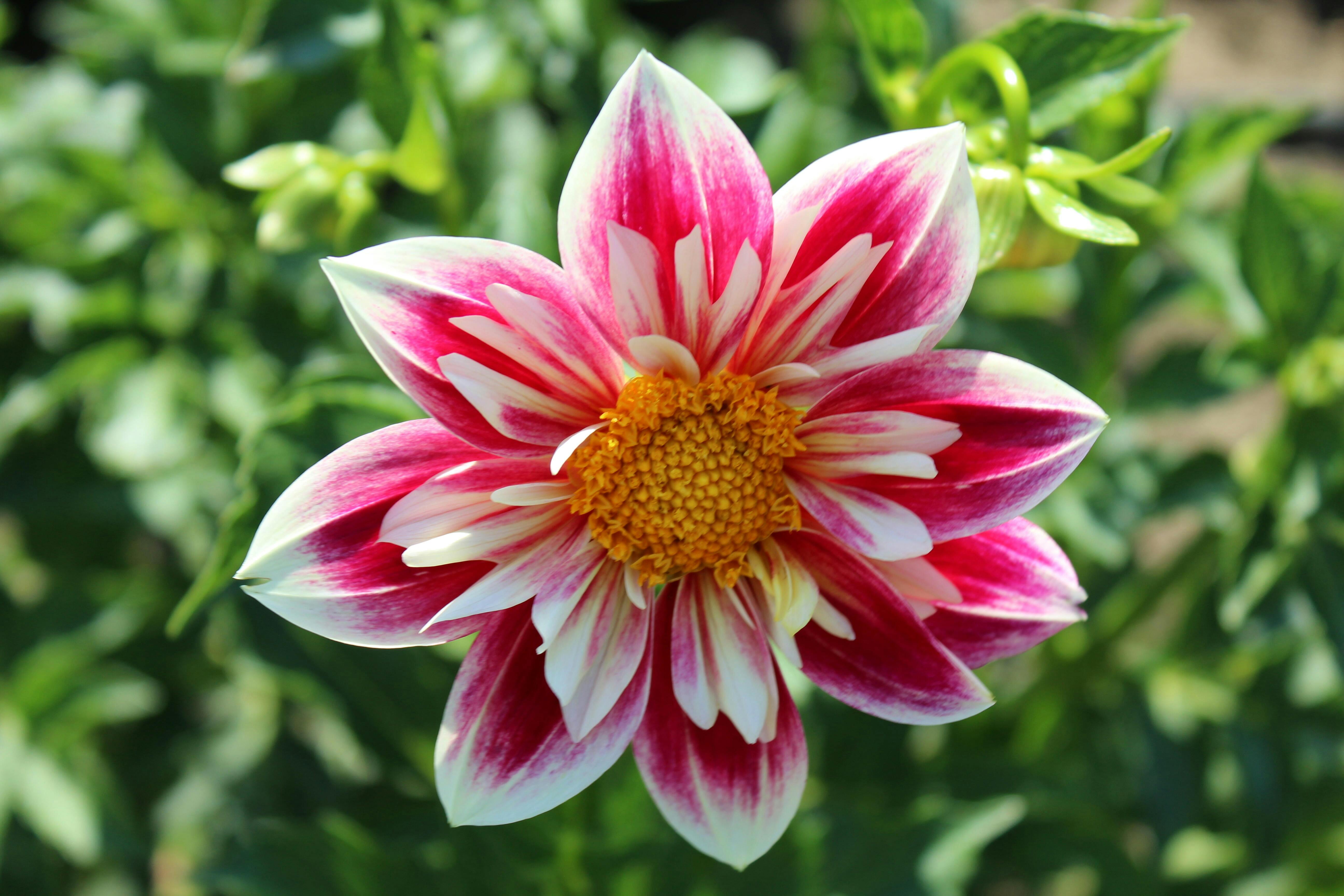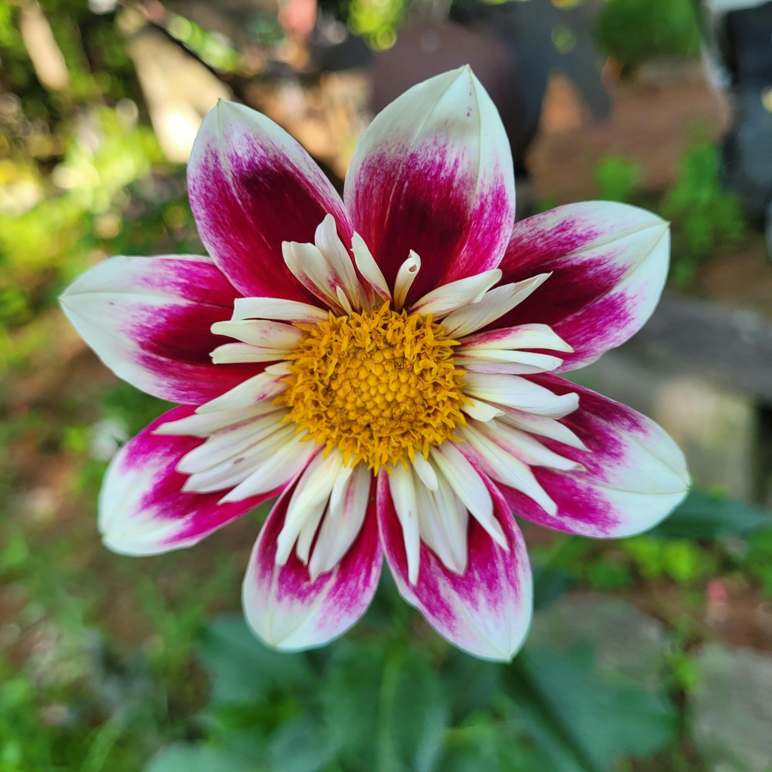 Nature's artistry is on full display in each of these colorful blossoms. Raspberry-red brushstrokes adorn the outer petals and a ruff of inner petals adds texture. The golden yellow, pollen-rich centers delight bees and butterflies all season long. A good dahlia for flower beds, containers and even vegetable gardens.