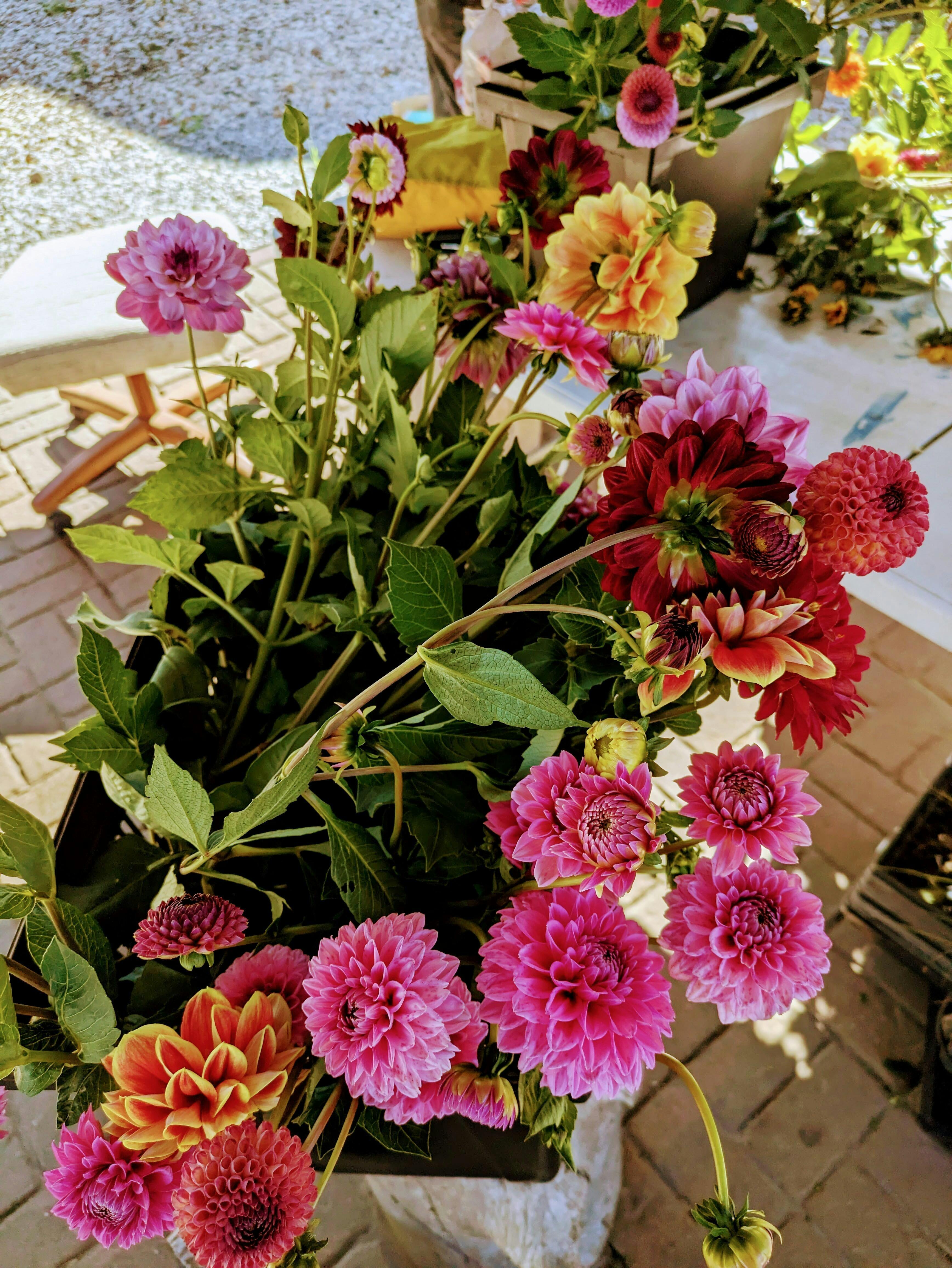 Ball dahlias feature a honeycomb of tightly curled and densely-packed petals. They are sturdy, long-lasting cut flowers. Varieties with smaller blossoms, like this one and its cousin Maarn, (both just 2-3" across), mix easily with other summer blooms. Sandra's rose-pink flowers have lighter pink tips that give them a frosted look.