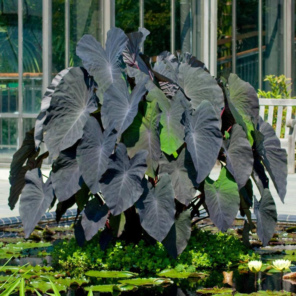 There's nothing ho-hum about this plant. Its dusky, purple-black leaves measure 2 feet across and the stems can grow up to 5 feet tall. Planted in the garden or in a large container, Black Magic will be a star attraction from summer to fall.