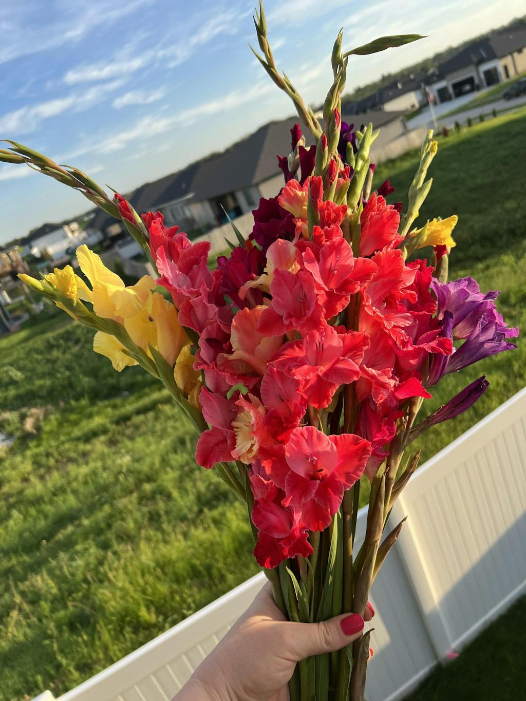 Vista's lightly ruffled, pure white petals are artfully decorated with violet, lavender and deep purple. This glad is eye-catching in the garden and makes a stunning cut flower. More than a dozen 3 to 4" blossoms on every stem.