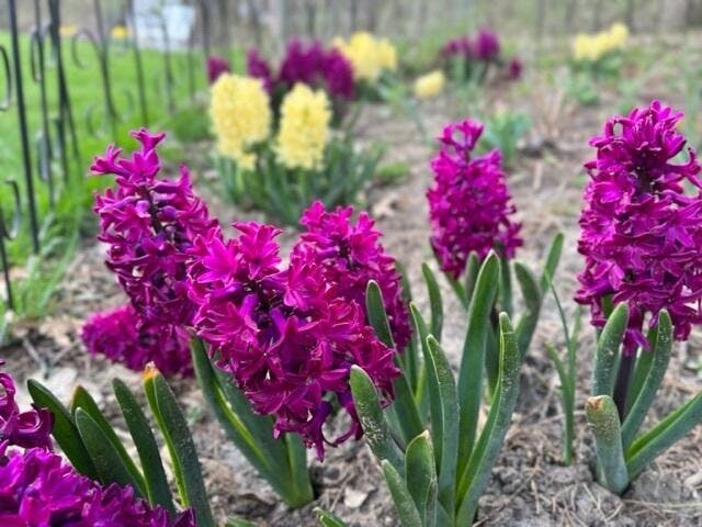 A gorgeous, violet-red hyacinth with rose and burgundy highlights. Dark stems add to the drama. Hyacinths bloom in mid-Spring at the same time as daffodils, triumph tulips and Darwin hybrid tulips. Plant them where it will be easy to enjoy their wonderful fragrance up close.