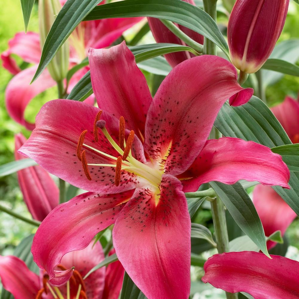 One of the reddest Oriental lilies on the market, with just a hint of raspberry and iridescent purple. Black freckles and a fabulous fragrance add to its appeal. Be sure to plant extra bulbs so you can add the flowers to summer arrangements and enjoy them indoors as well as out.