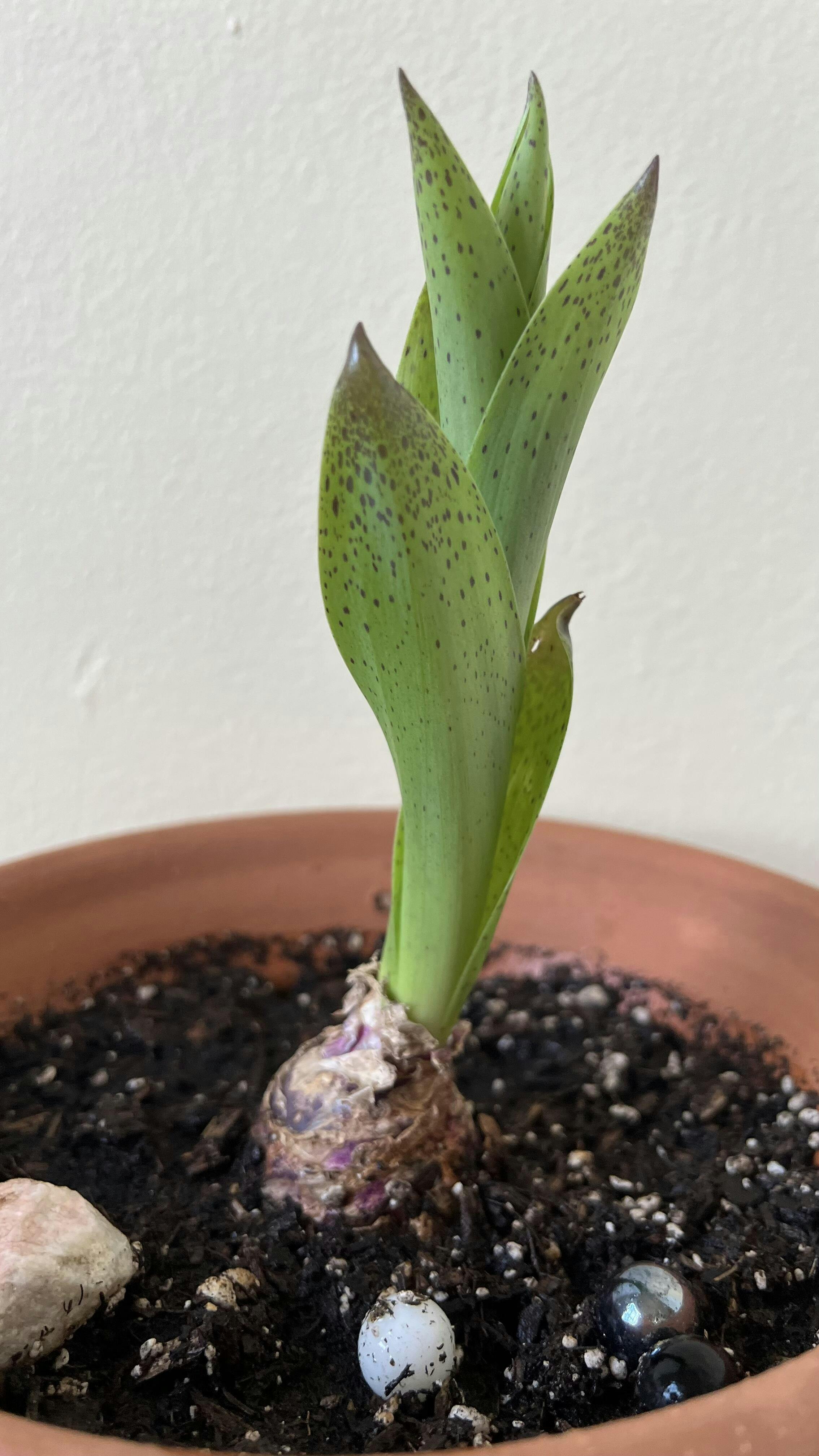 A rare species of hyacinth native to the island of Madeira off the coast of Portugal. The amethyst-purple bulbs produce a rosette of foliage, followed a few weeks later by an exotic lavender-blue flower. The bulbs are winter hardy in zones 9-11, but may also be grown indoors much like an amaryllis. Bulbs are propagated in Israel, not wild-collected.