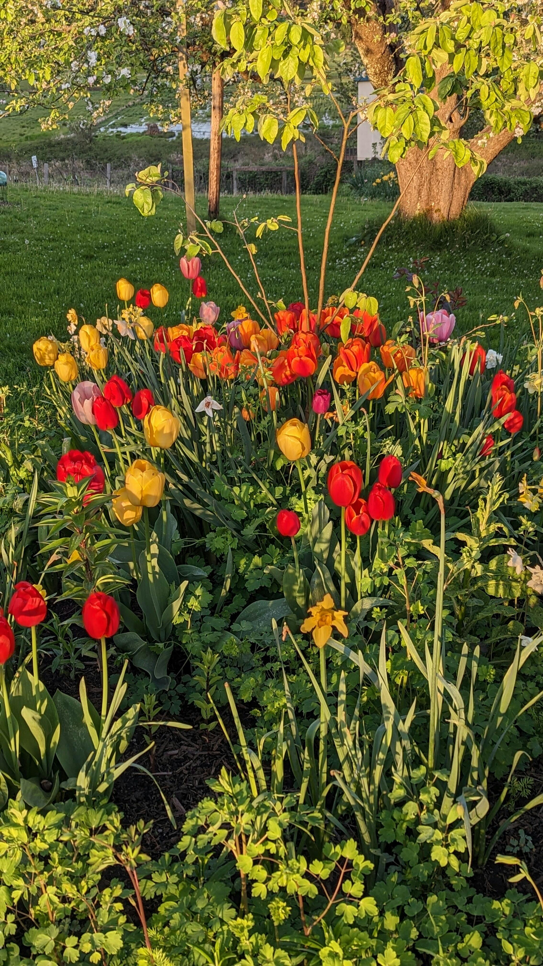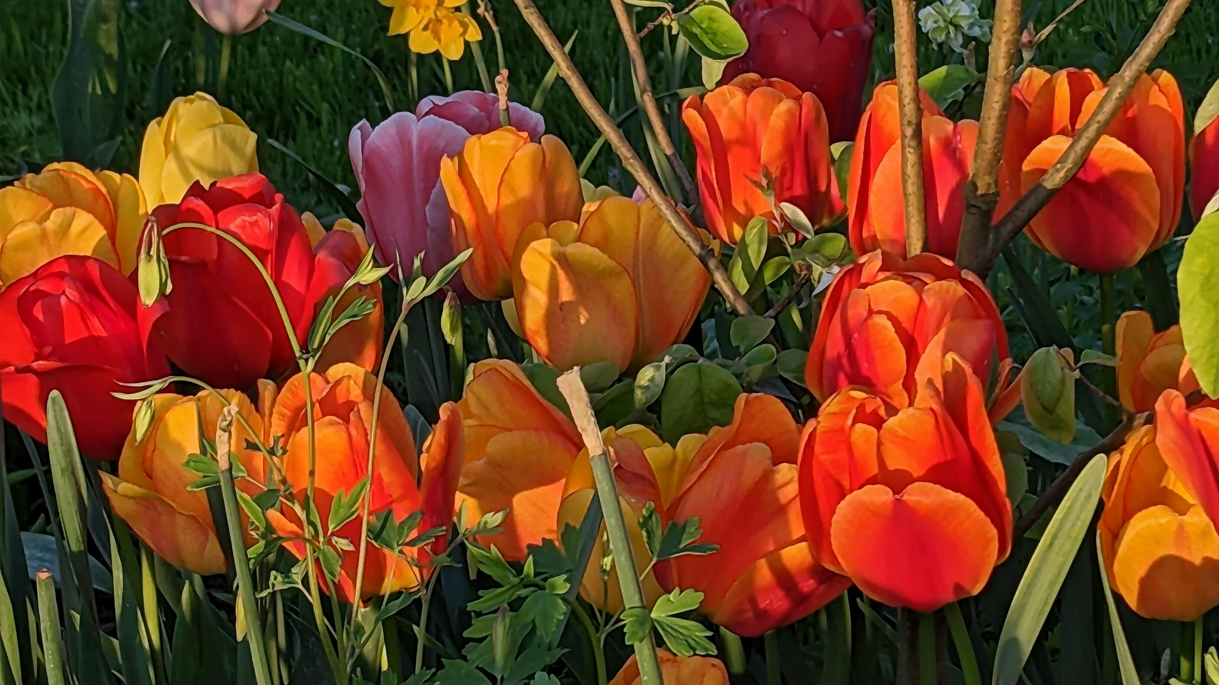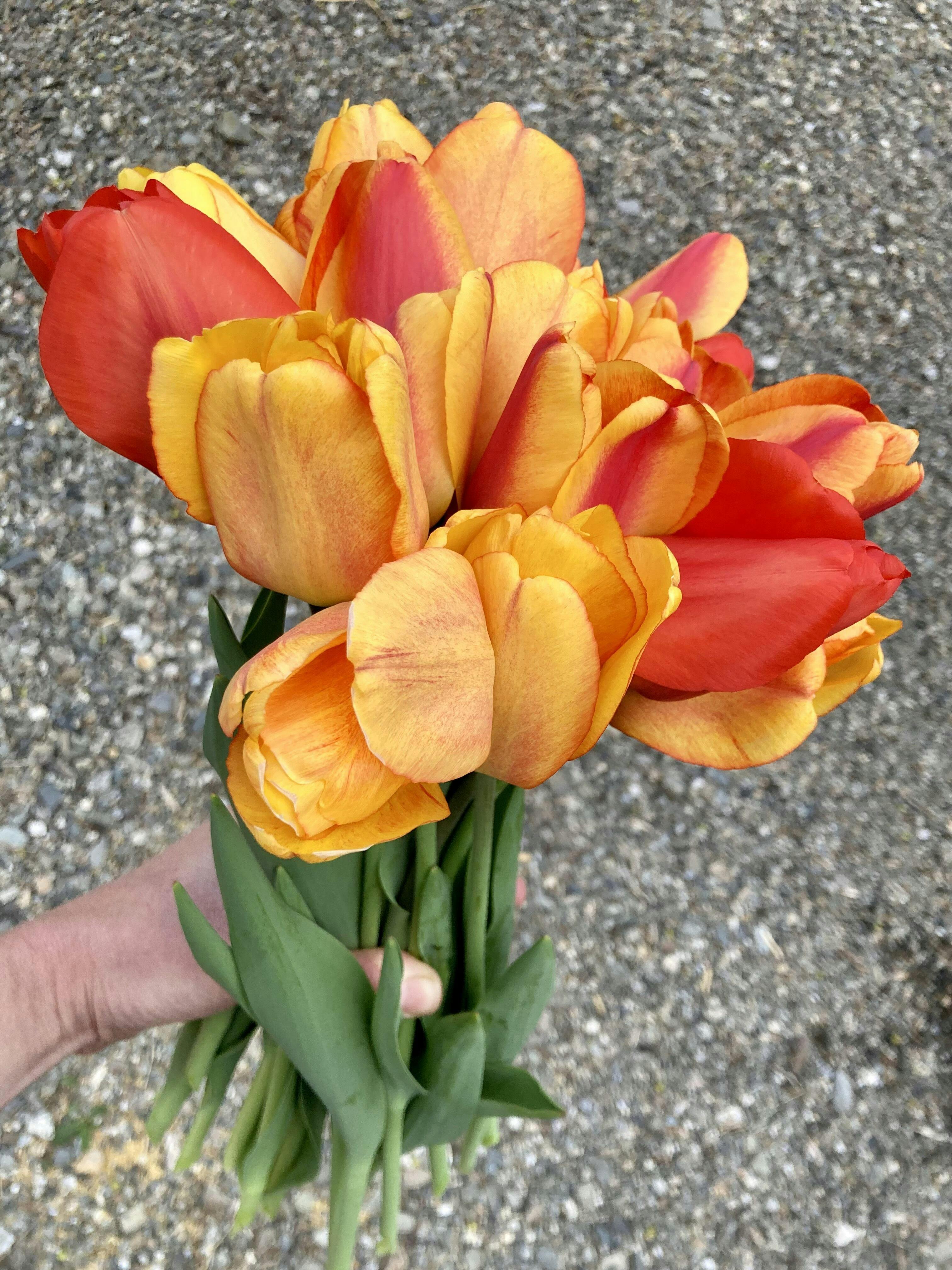 This custom blend of midseason triumph tulips is ideal for perennial gardens. The colors perfectly complement bleeding heart, primroses, violas and other spring favorites. These tulips are also fantastic for bouquets. We offer them in bulk so you have plenty for cutting.